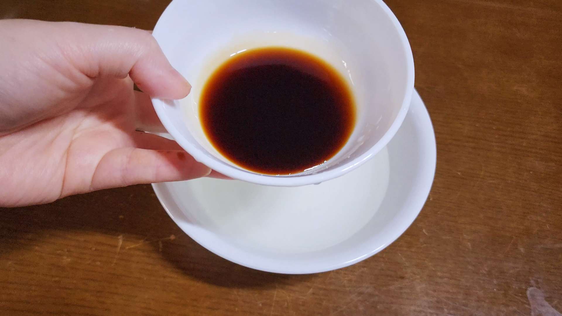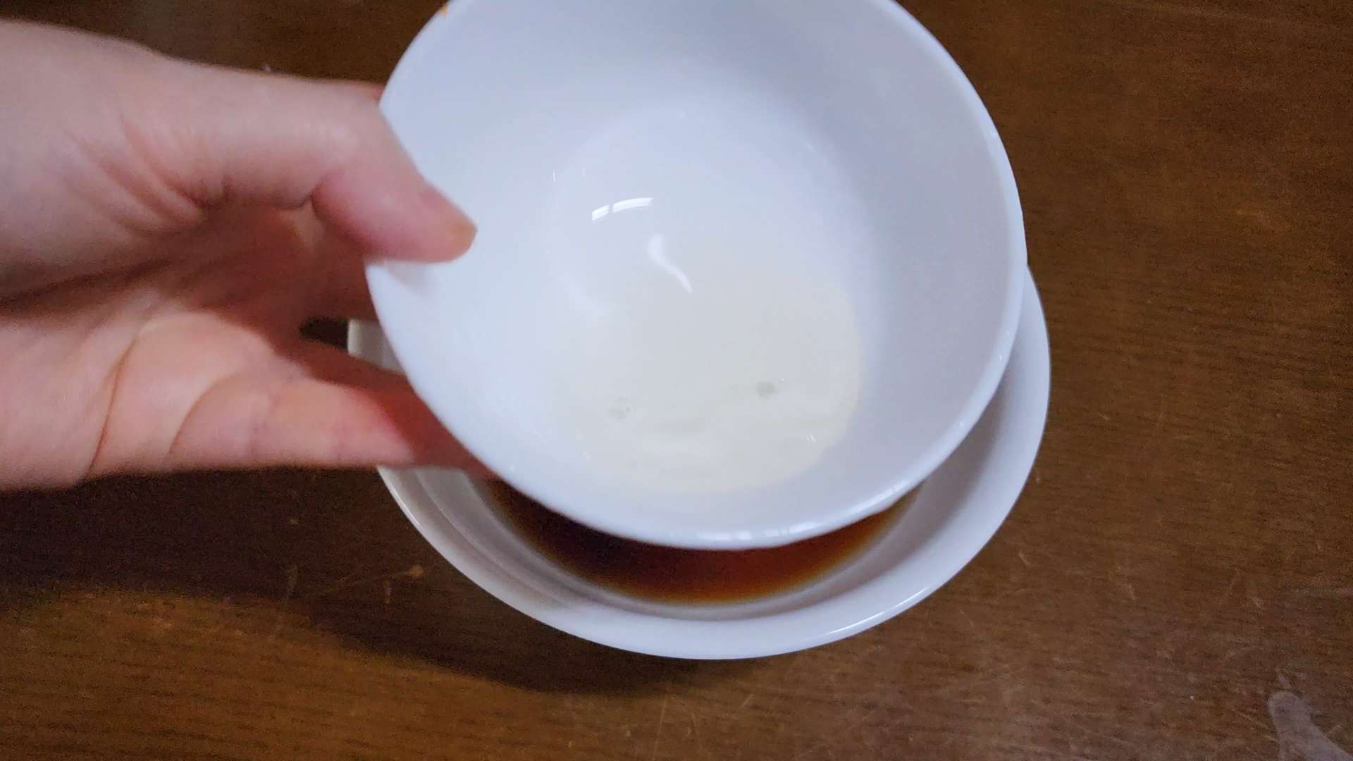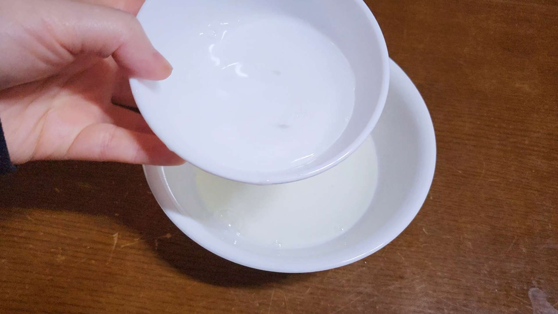 차가운 물 120ml를 넣고 흔들어 섞어줍니다.