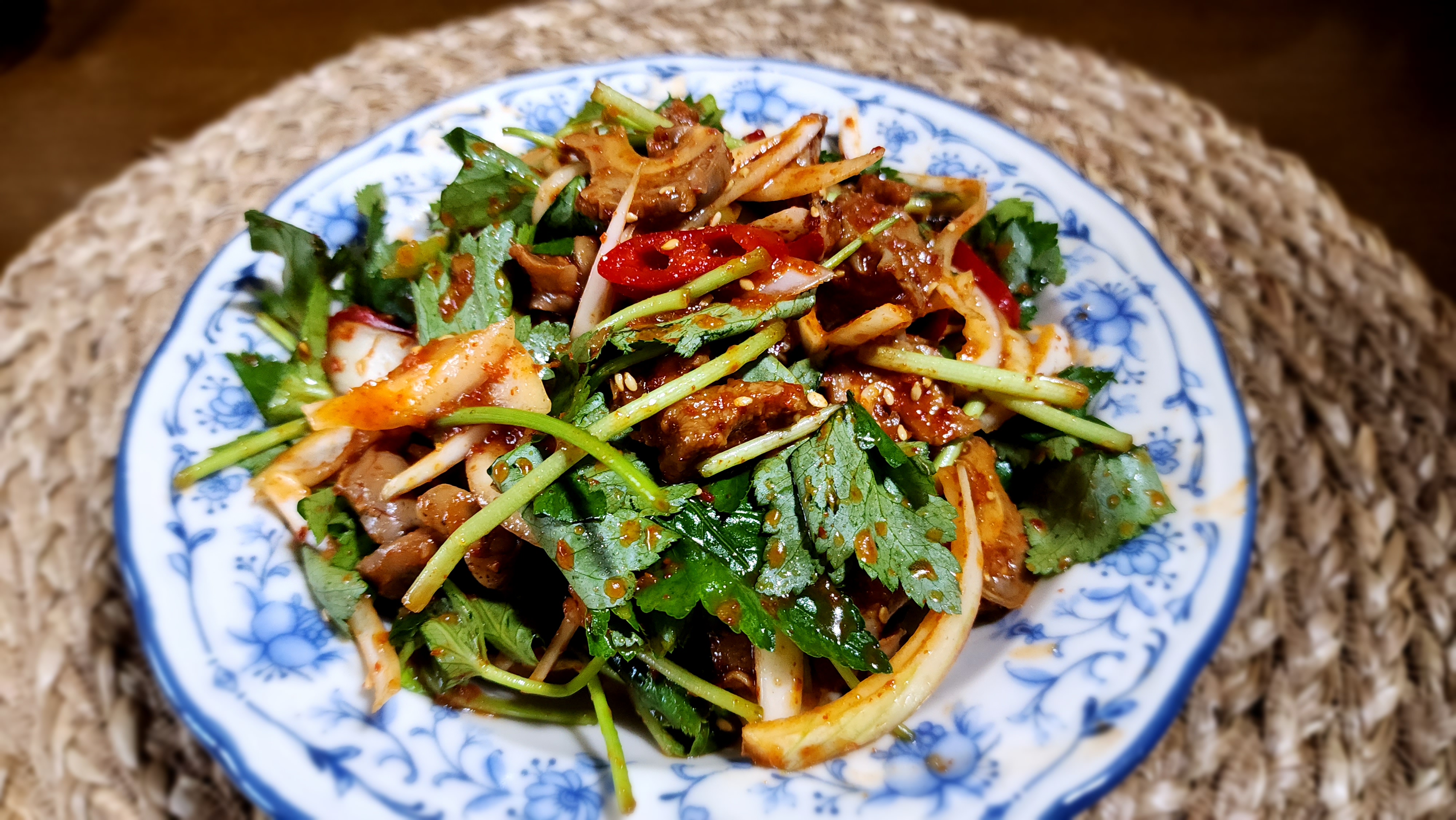 향긋하고 아삭한 참나물과 쫄깃한 골뱅이를 매콤새콤달콤한 양념에 무쳐 맛있답니다.
