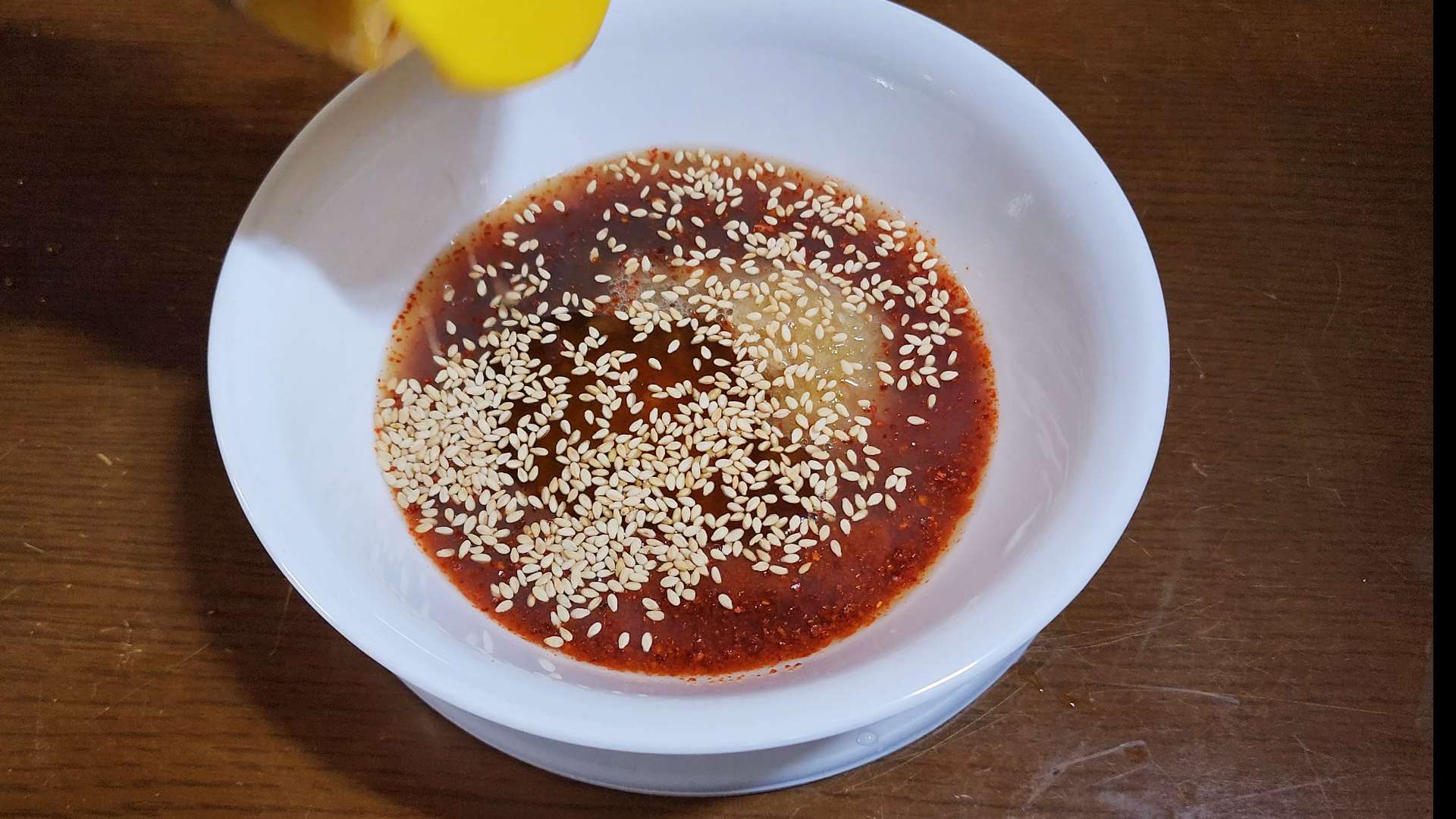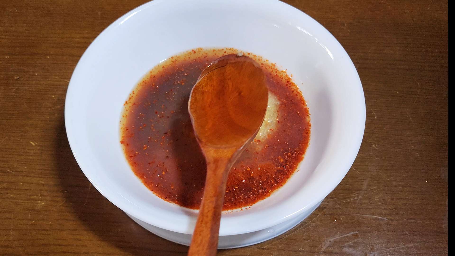 골뱅이 국물, 고춧가루 1T, 식초 1T, 진간장 1T,