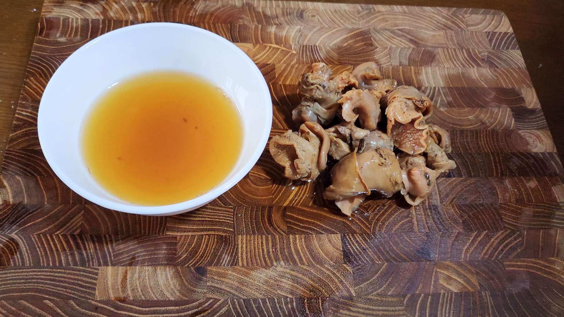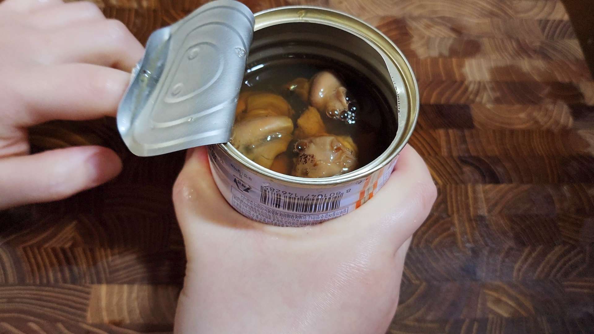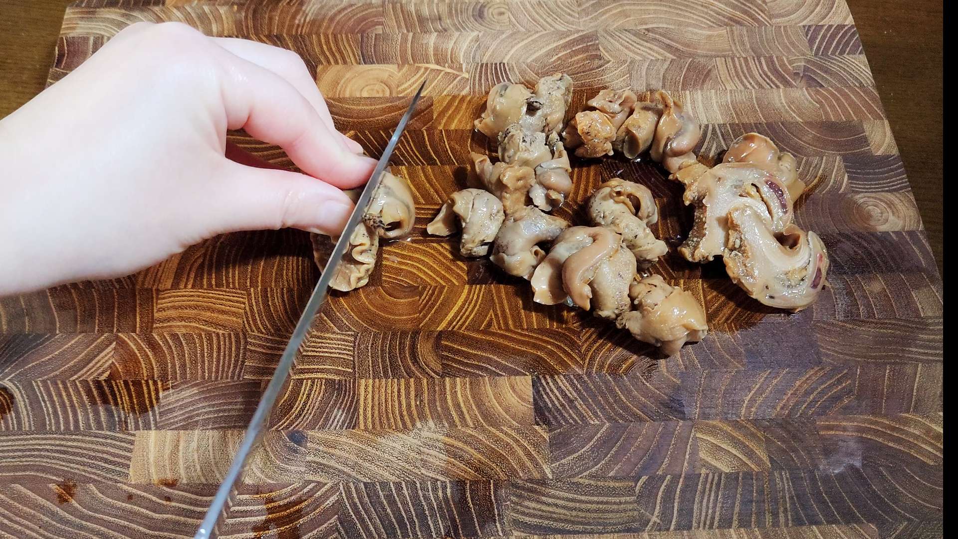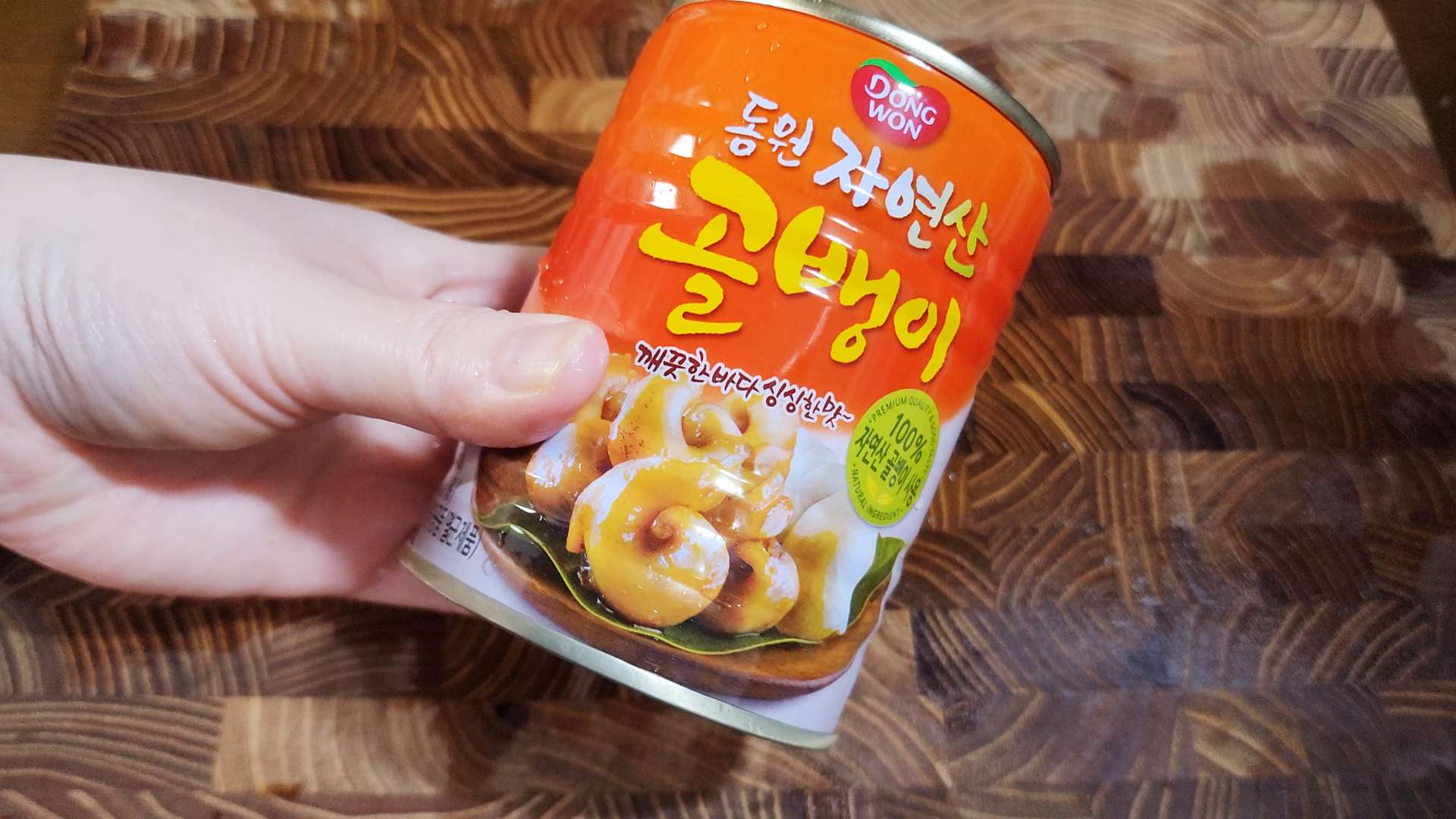 골뱅이 통조림은 먹기 좋은 크기로 잘라줍니다.