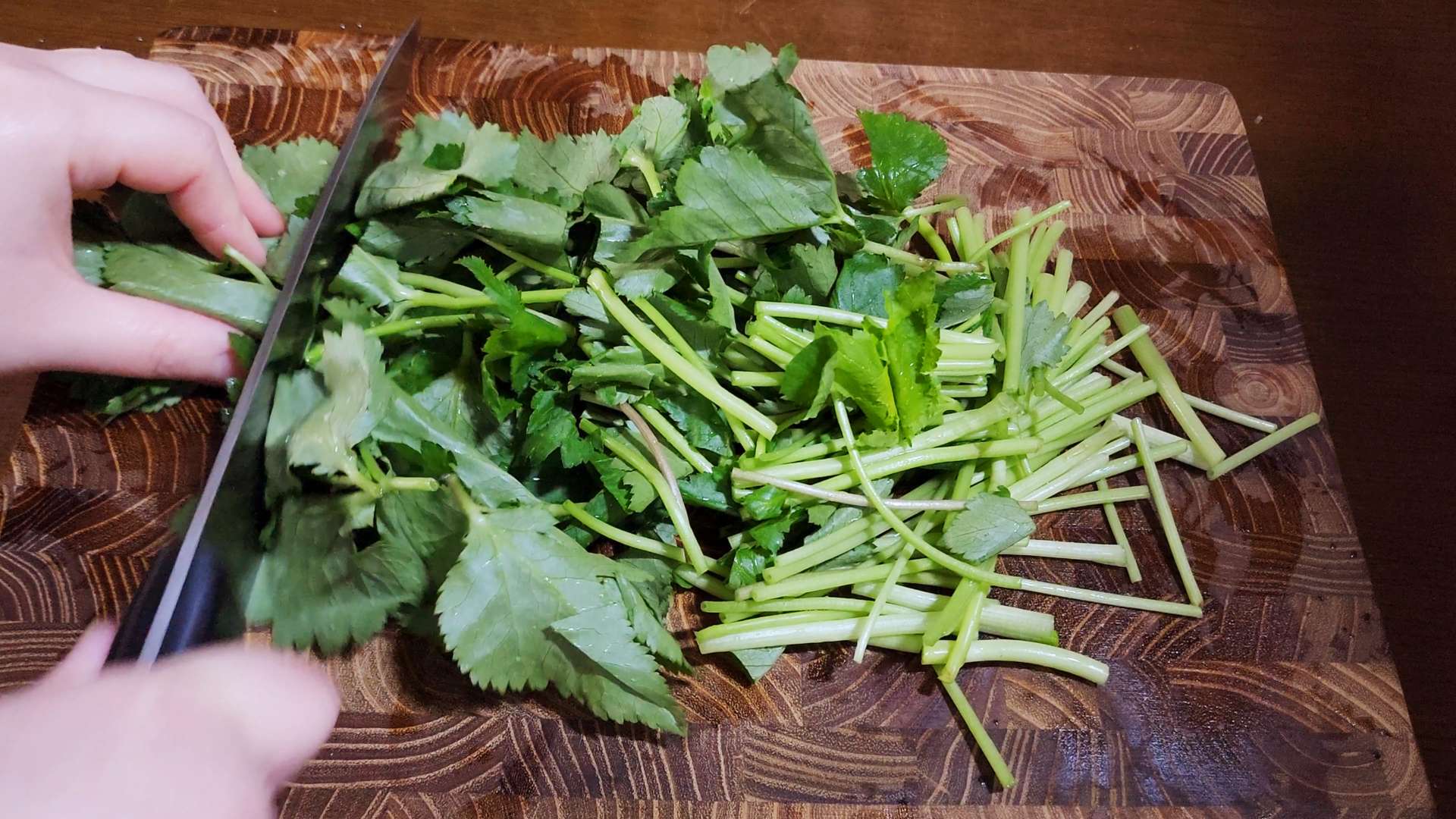 참나물은 깨끗하게 씻어 먹기 좋은 길이로 잘라줍니다.