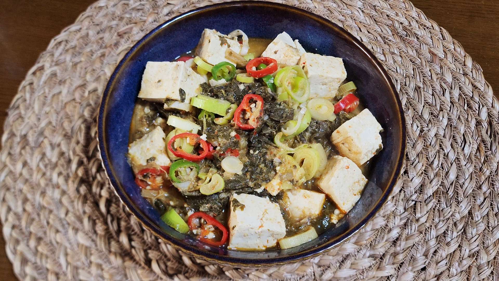 재료: 삶은 시래기 300g, 대파 흰 부분 1대, 물 800ml, 손질한 국거리용 멸치 1/2줌, 홍고추 1개, 청양고추 1개, 두부 1/2모, 된장 2T, 다진마늘 2T, 고춧가루 1T,