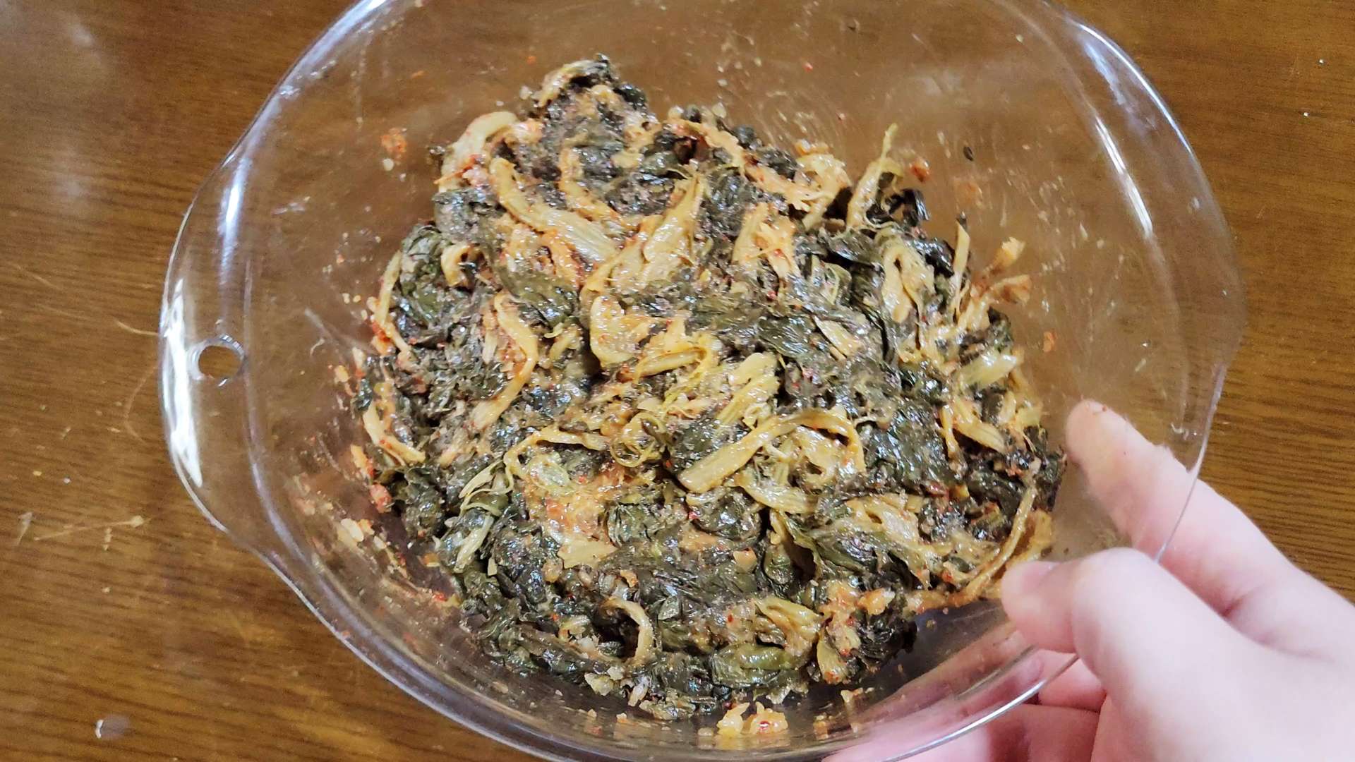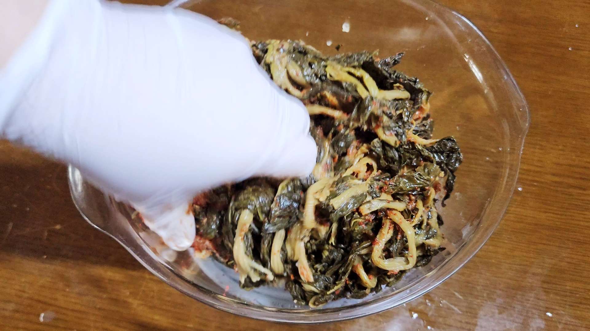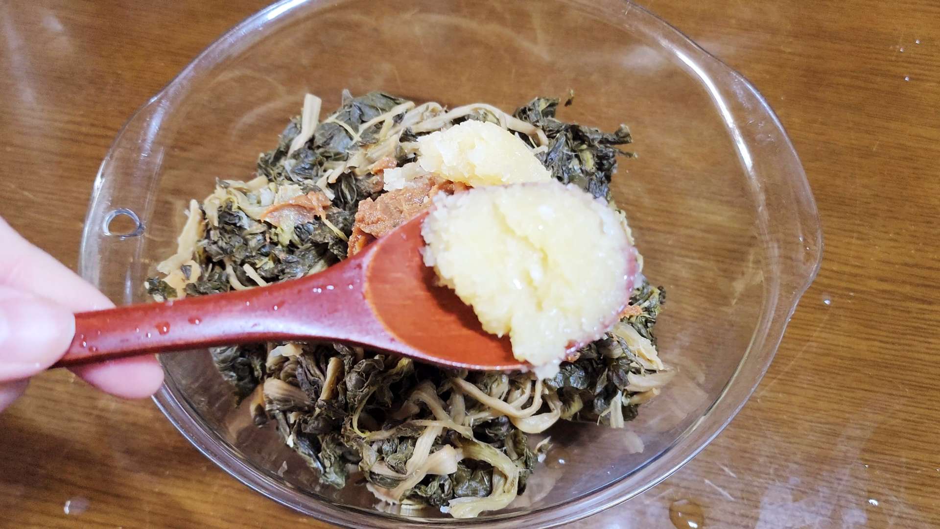 시래기, 된장 2T, 다진마늘 2T, 고춧가루 1T, 소고기 다시다 1T, 들기름 2T, 후추 1t를 넣고 무쳐 20분 재워줍니다.
