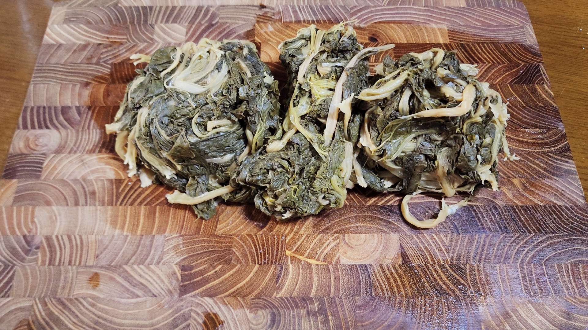 삶은 시래기 300g는 물기를 짜고 적당한 크기로 잘라줍니다.