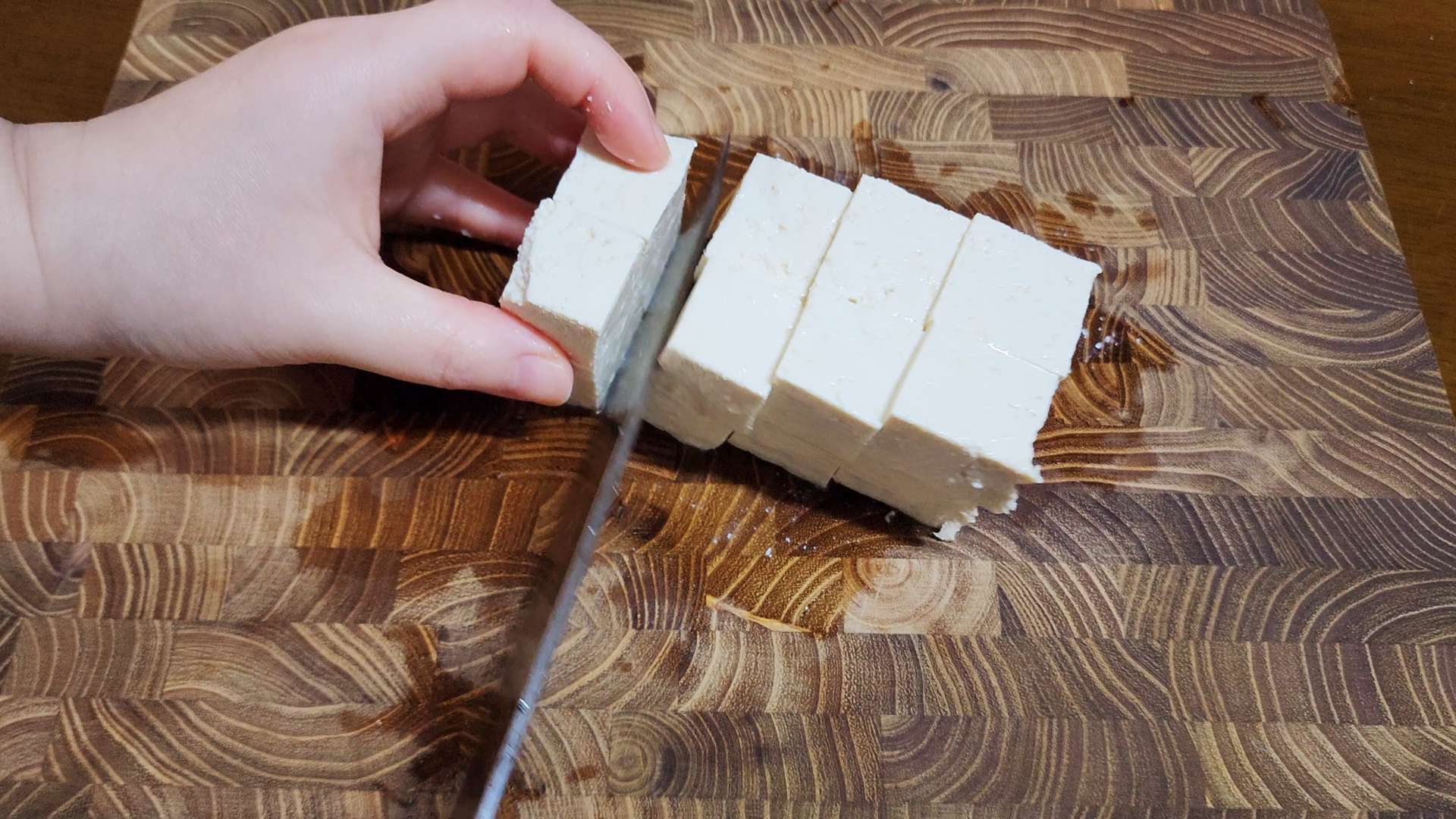 두부는 깍둑 썰어줍니다.