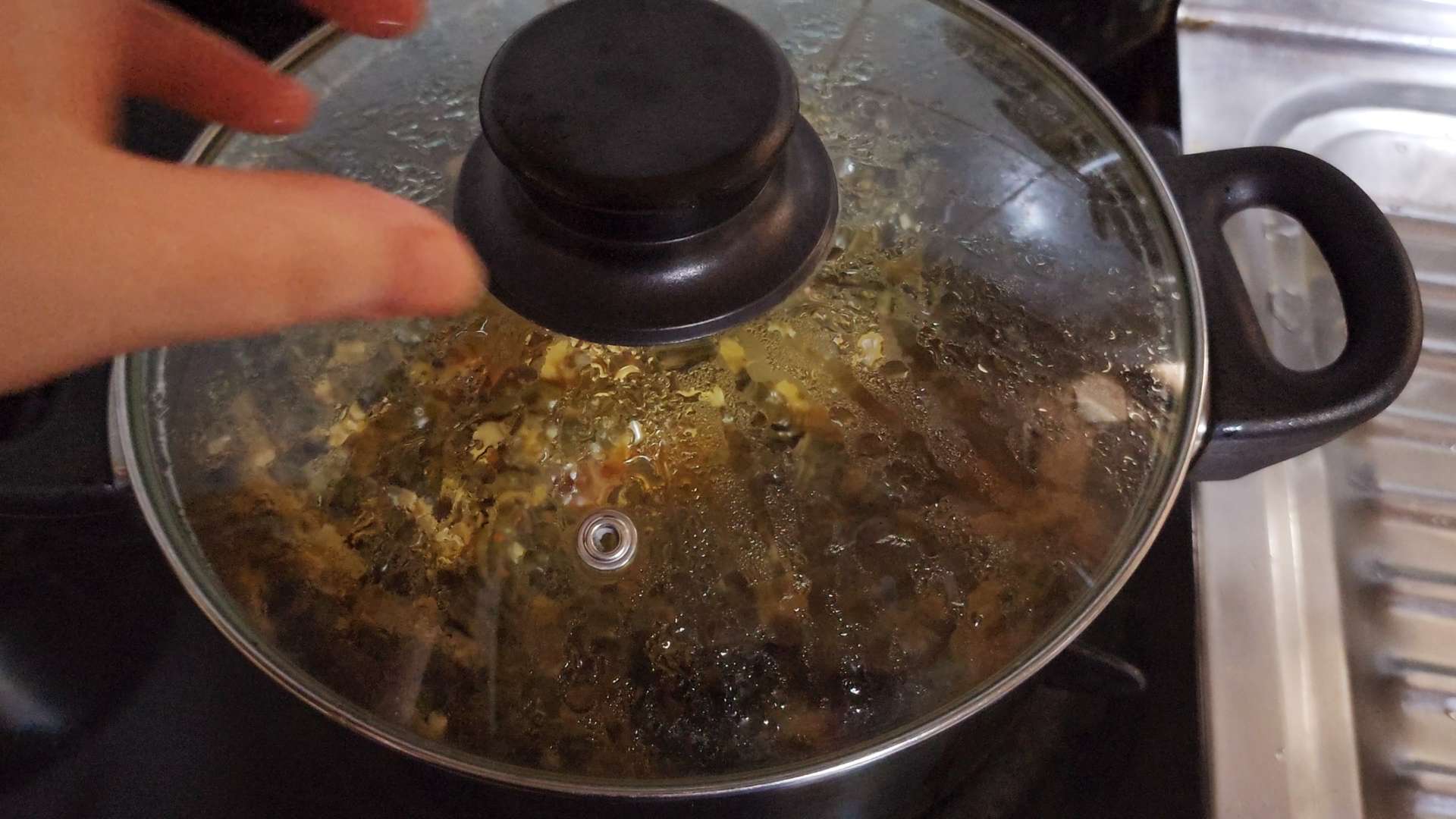 물이 끓으면 시래기를 넣고 강불에서 바글바글 끓여줍니다. 중불로 줄인 후 뚜껑 닫고 10분 동안 뭉근하게 끓여줍니다.