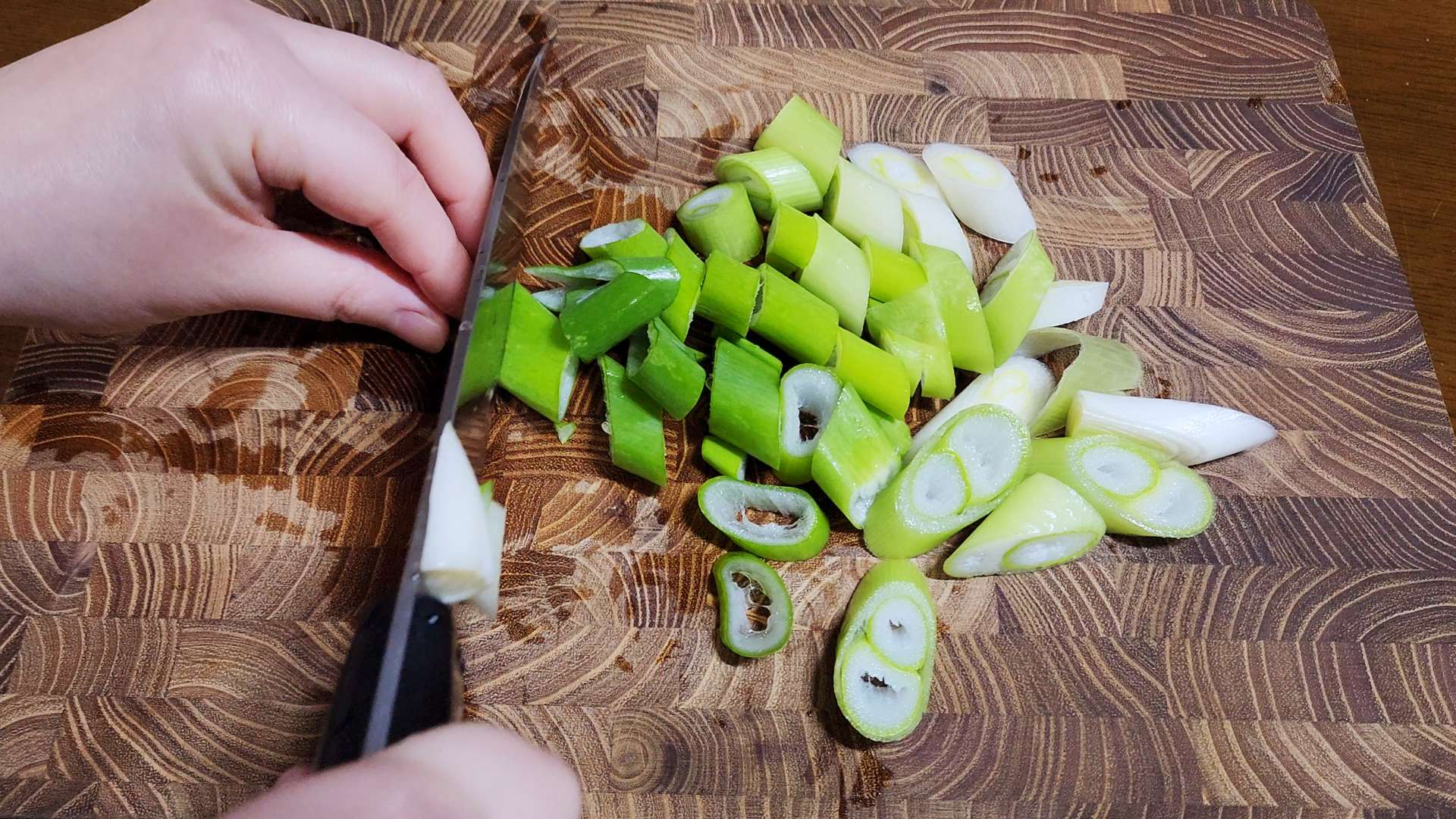 대파는 크게 어슷 썰어줍니다.
