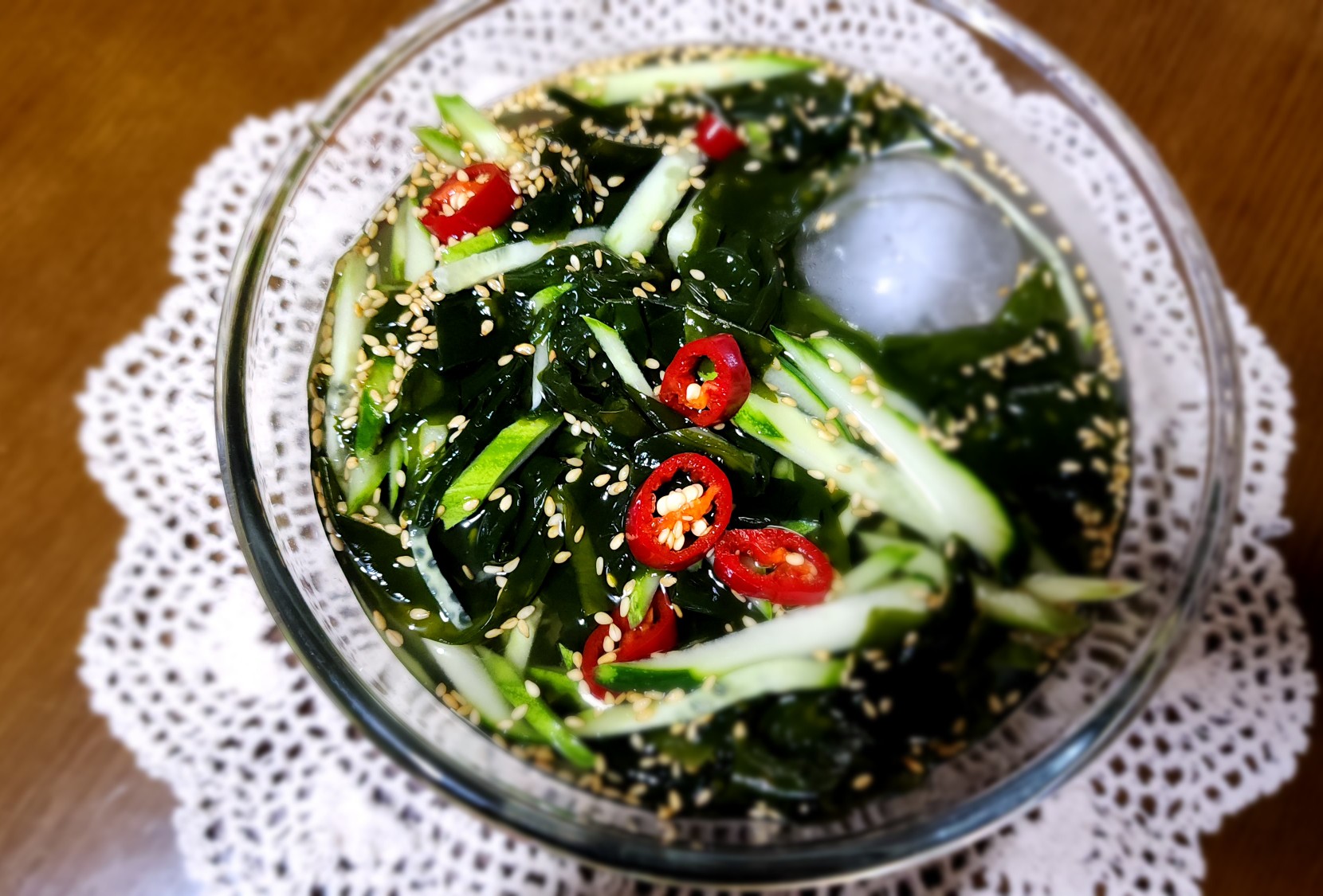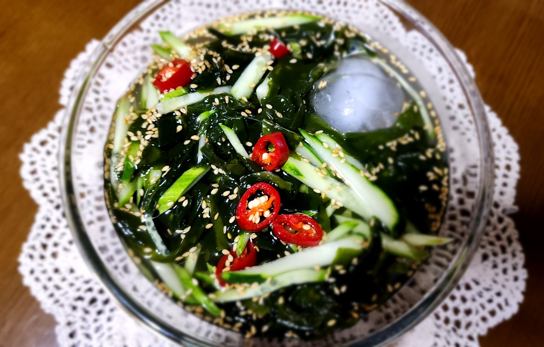 새콤달콤 시원한 국물에 아삭한 오이와 부드러운 미역을 같이 먹으면 맛있답니다.
