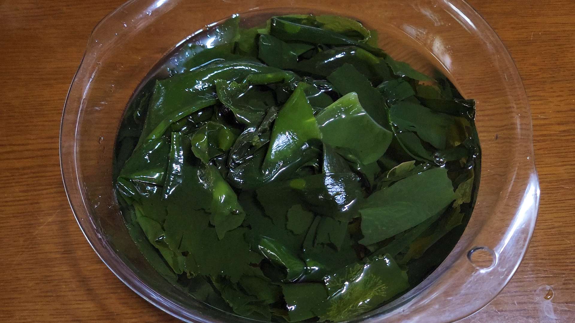 미역은 먹기 좋은 크기로 잘라줍니다.