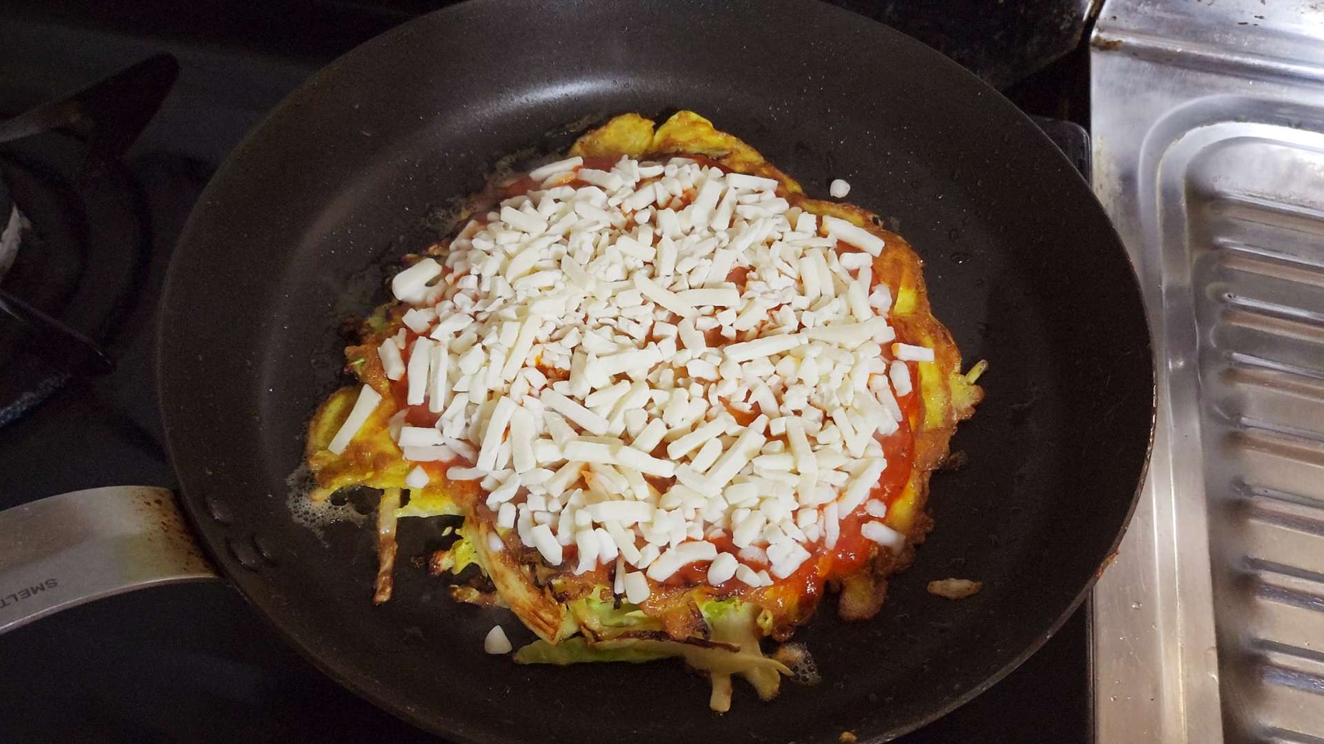 뚜껑 닫고 약불에 치즈가 녹을 때까지 익혀줍니다.