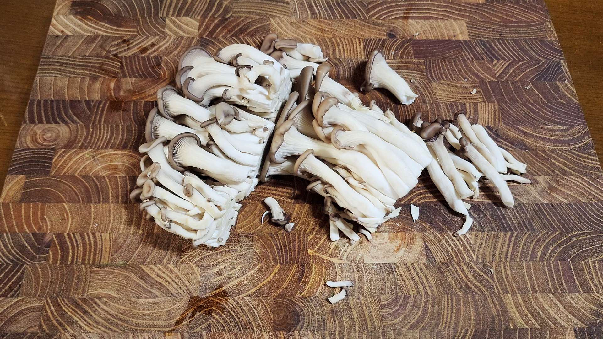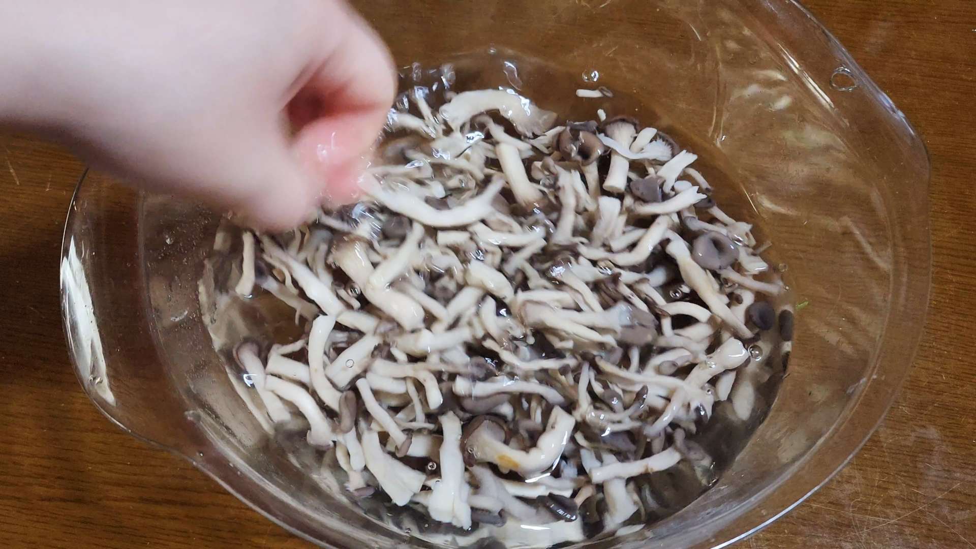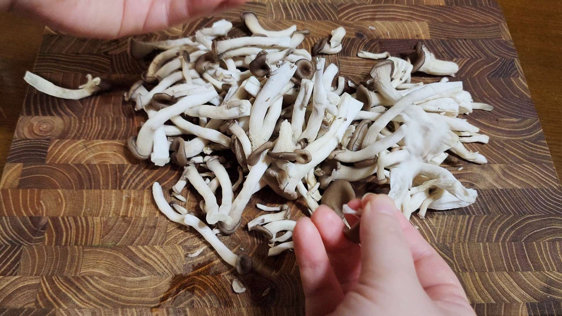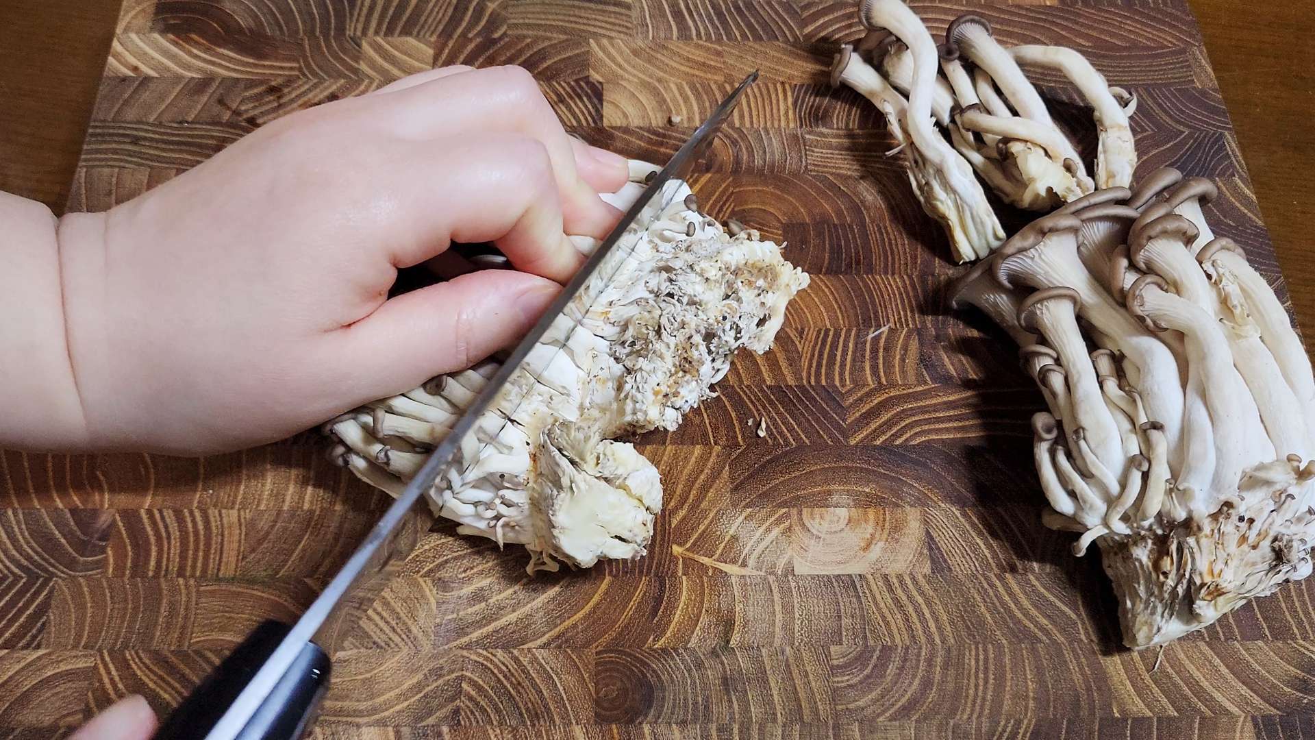 느타리버섯은 밑동을 자르고 먹기 좋은 크기로 찢어줍니다.