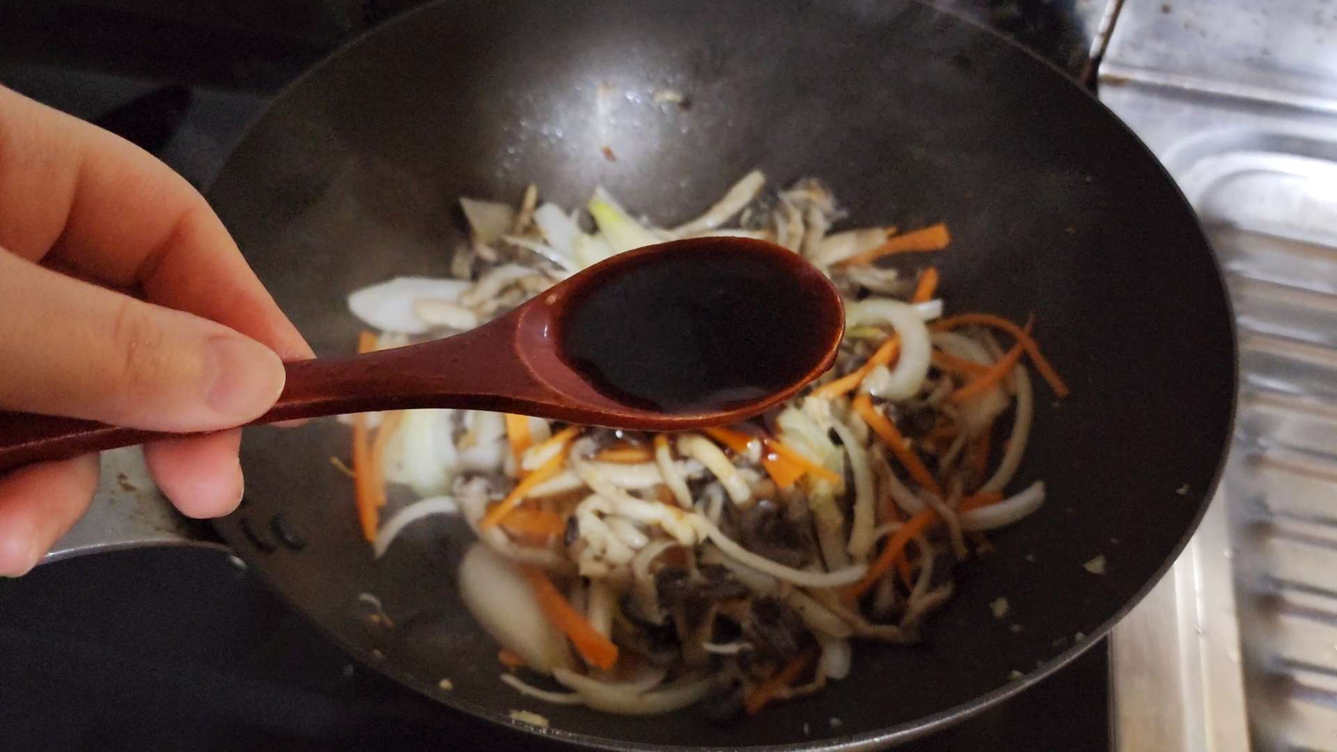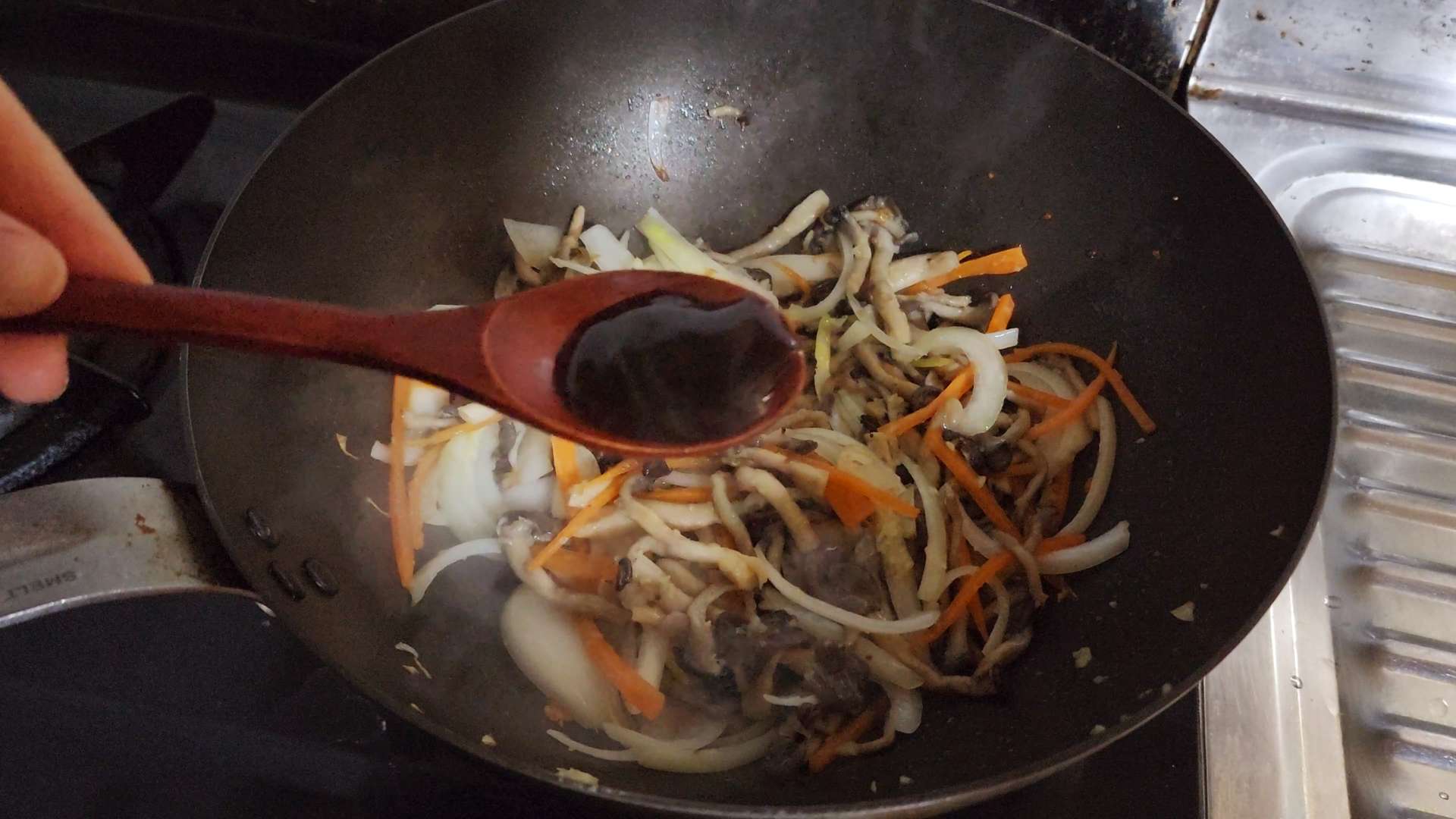 굴소스 1T, 진간장 1T 넣고 볶아줍니다.