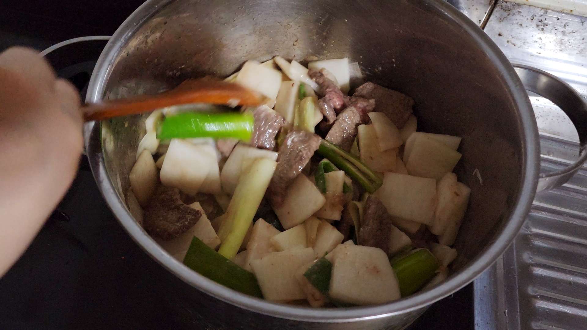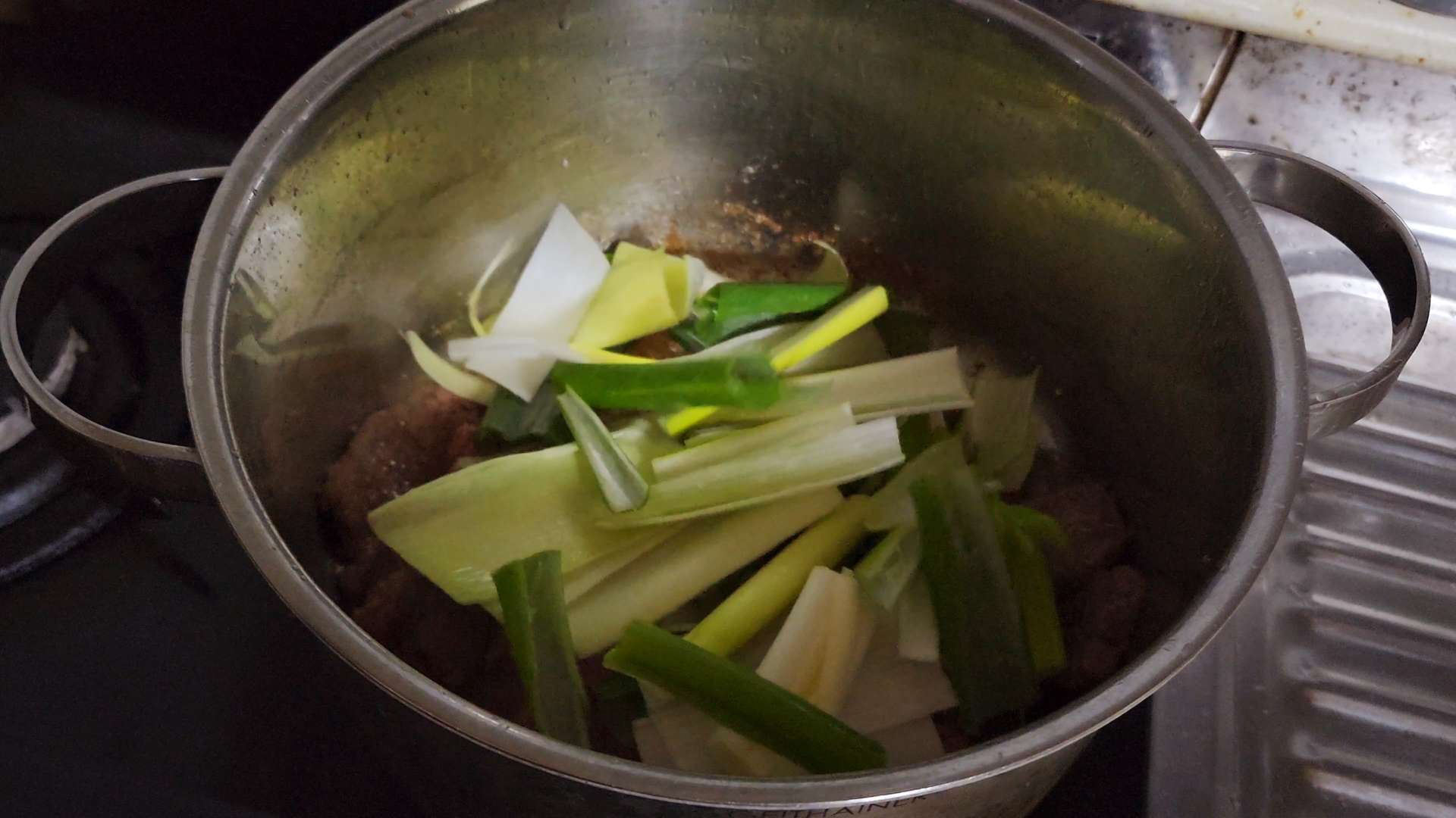 재료: 소고기 양지 300g, 파 2대, 무 500g,