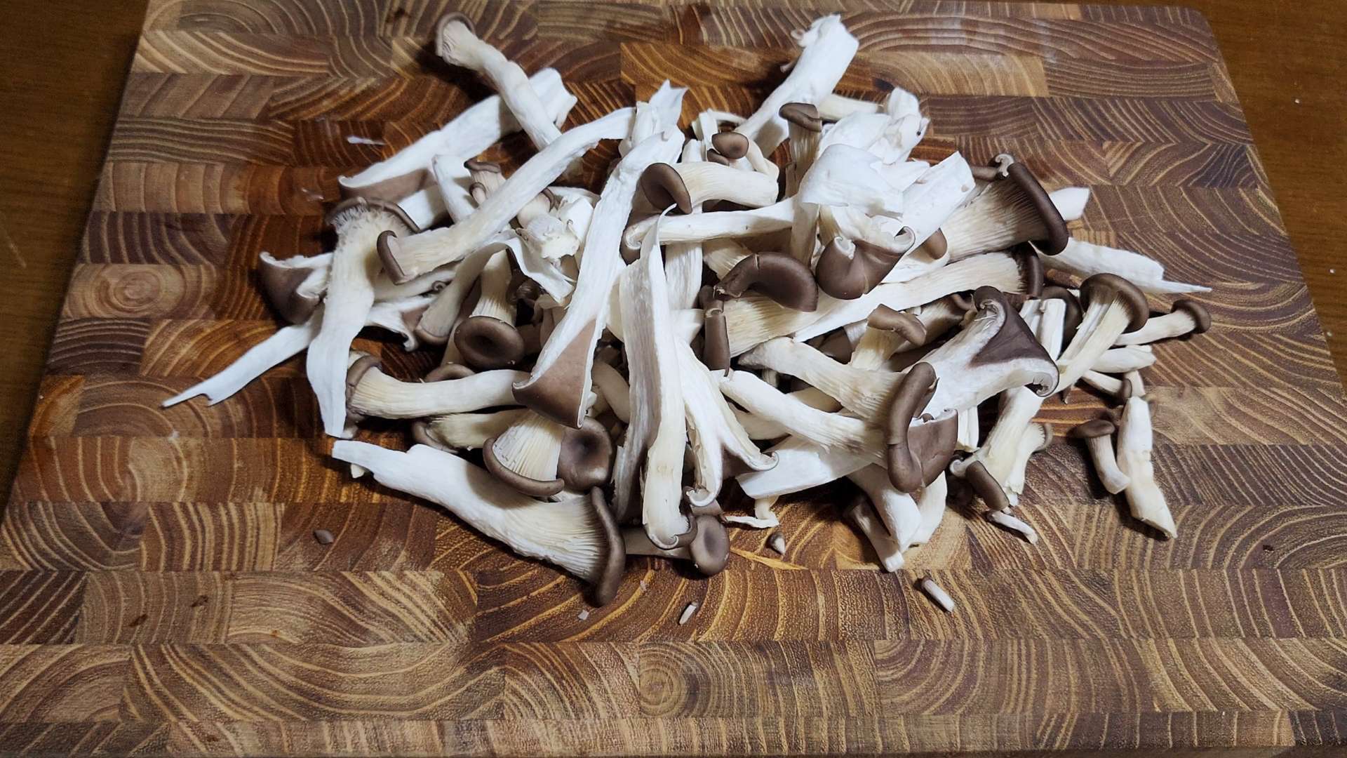 느타리버섯은 밑동을 자르고 먹기 좋은 크기로 찢어줍니다.