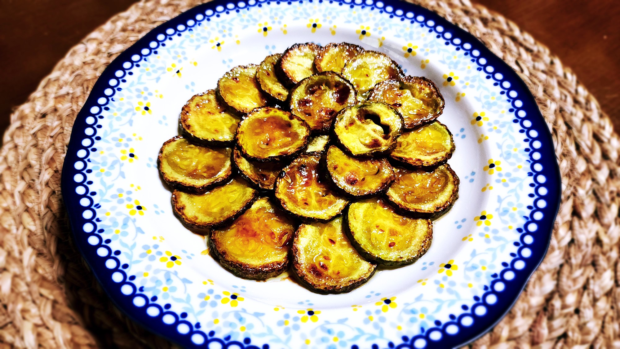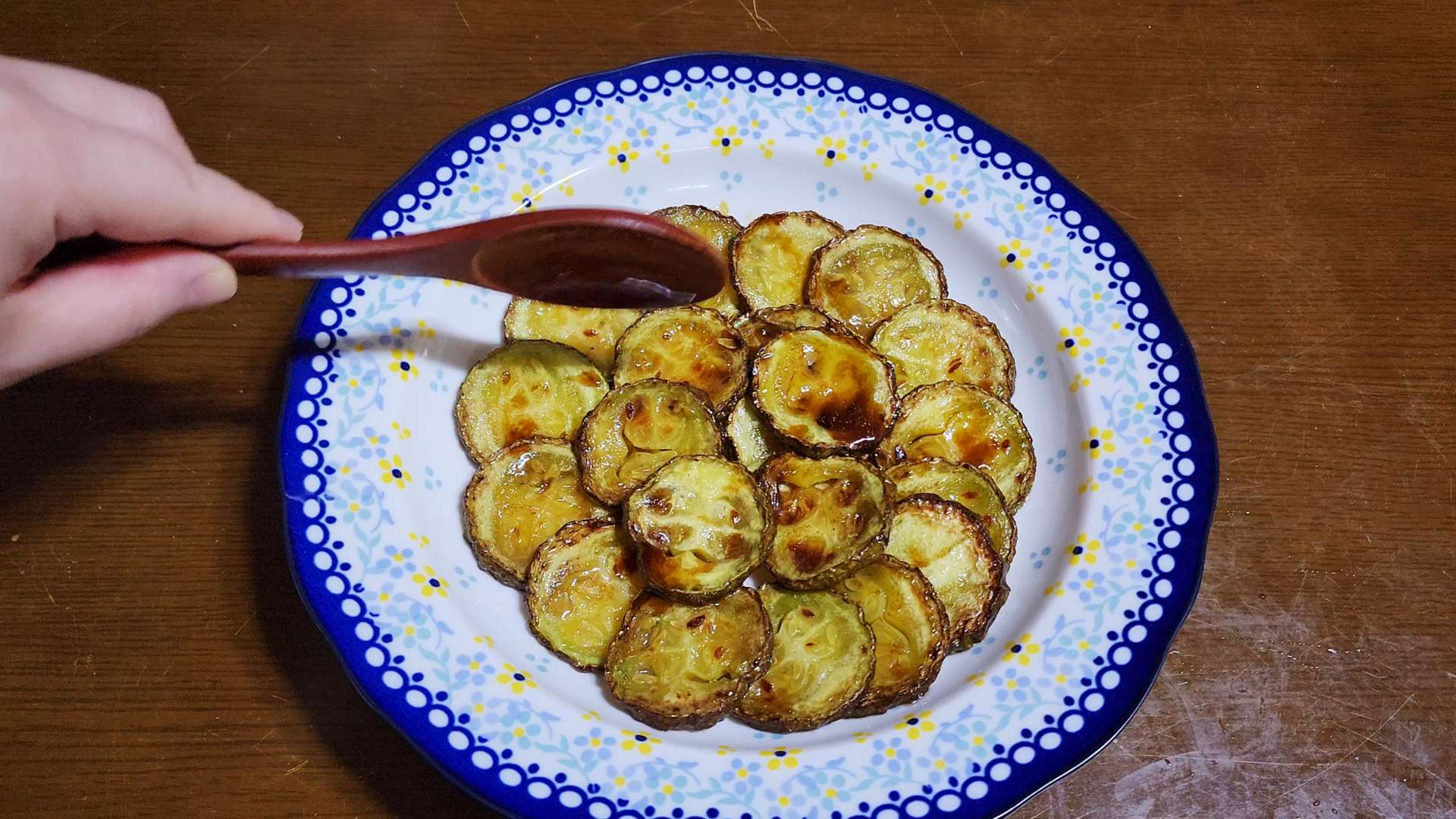 그릇에 구운 애호박을 담아줍니다.