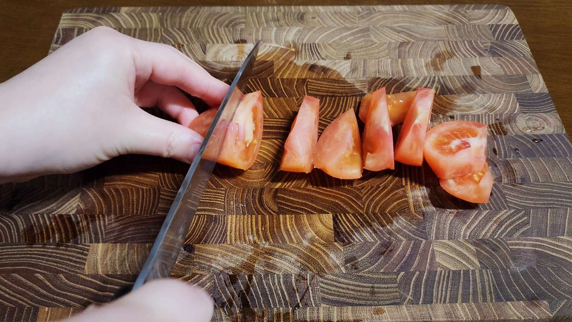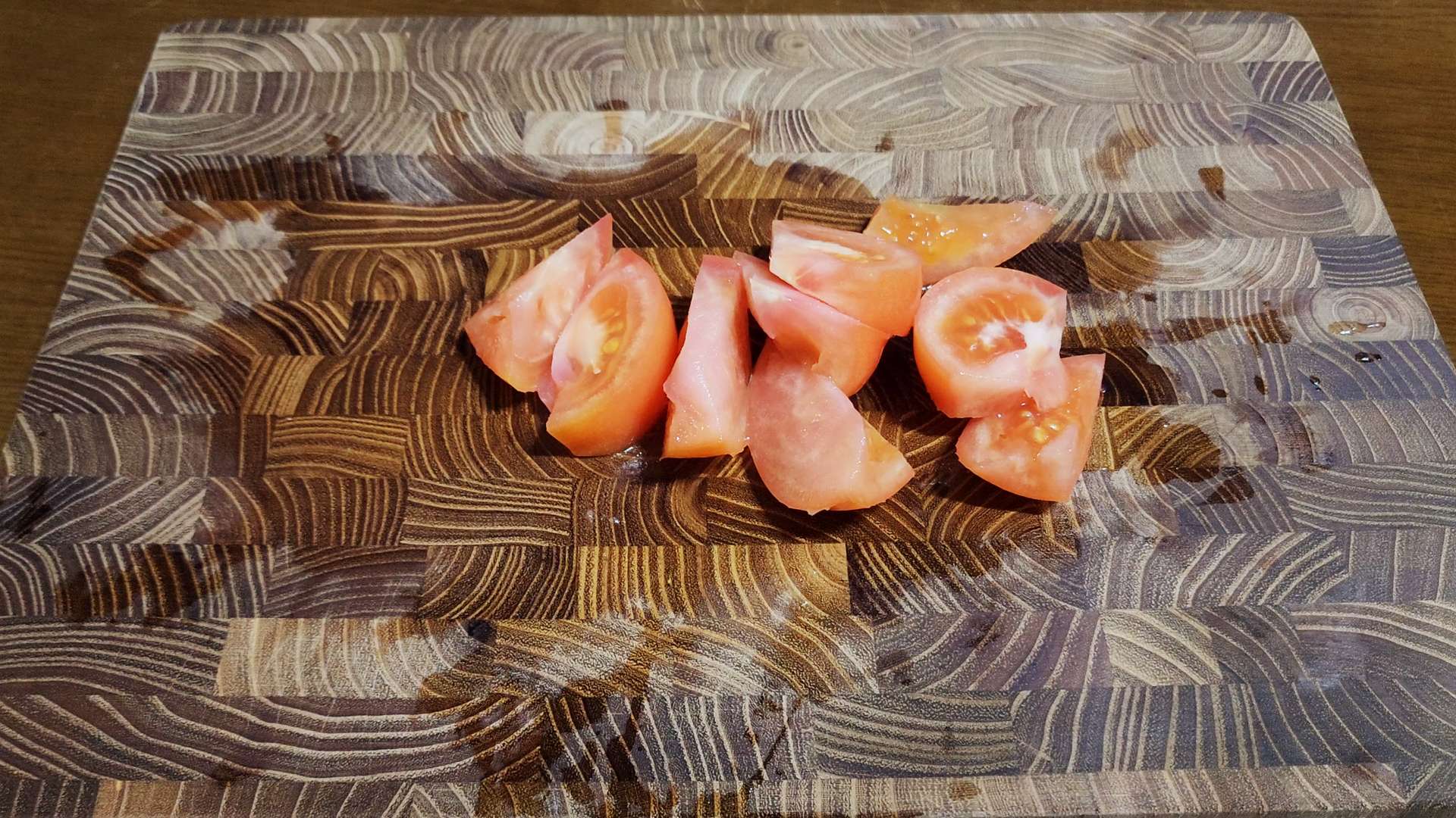 토마토는 먹기 좋은 크기로 잘라줍니다.
