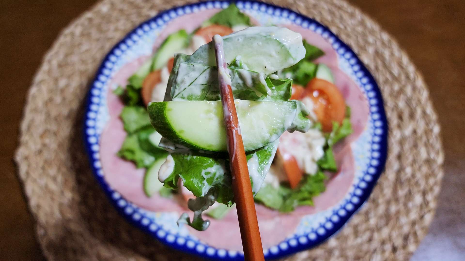 아삭이상추, 오이, 토마토를 올려줍니다.