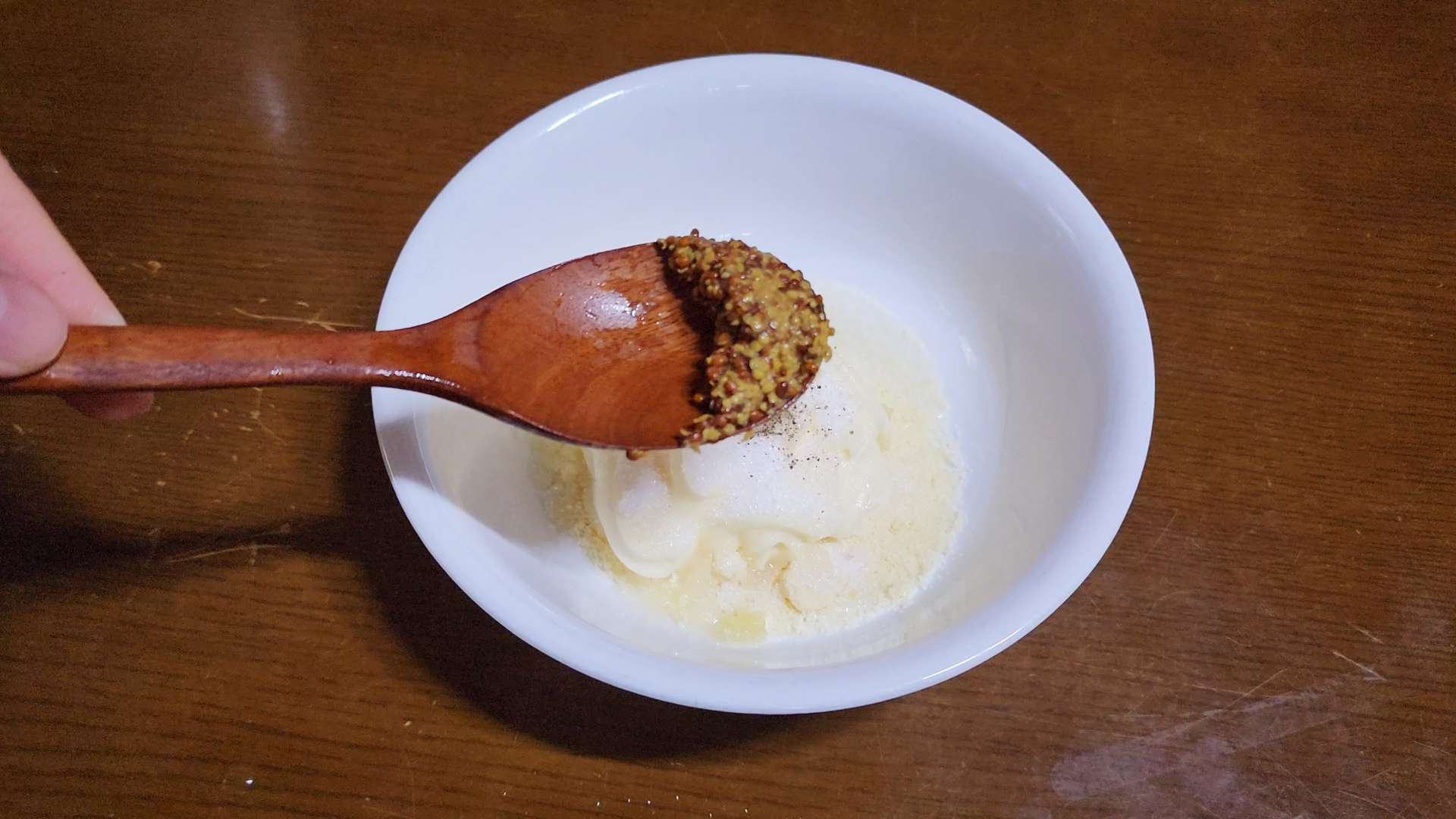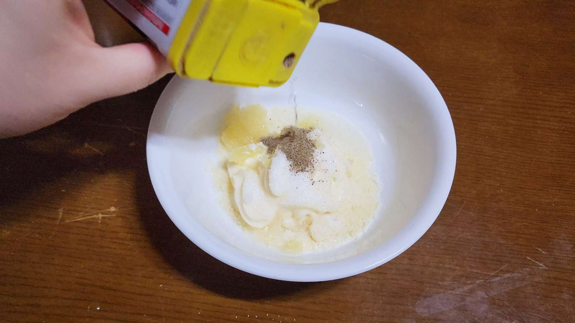 마요네즈 3T, 설탕 2t, 다진 마늘 1t, 후춧가루, 씨겨자 1t