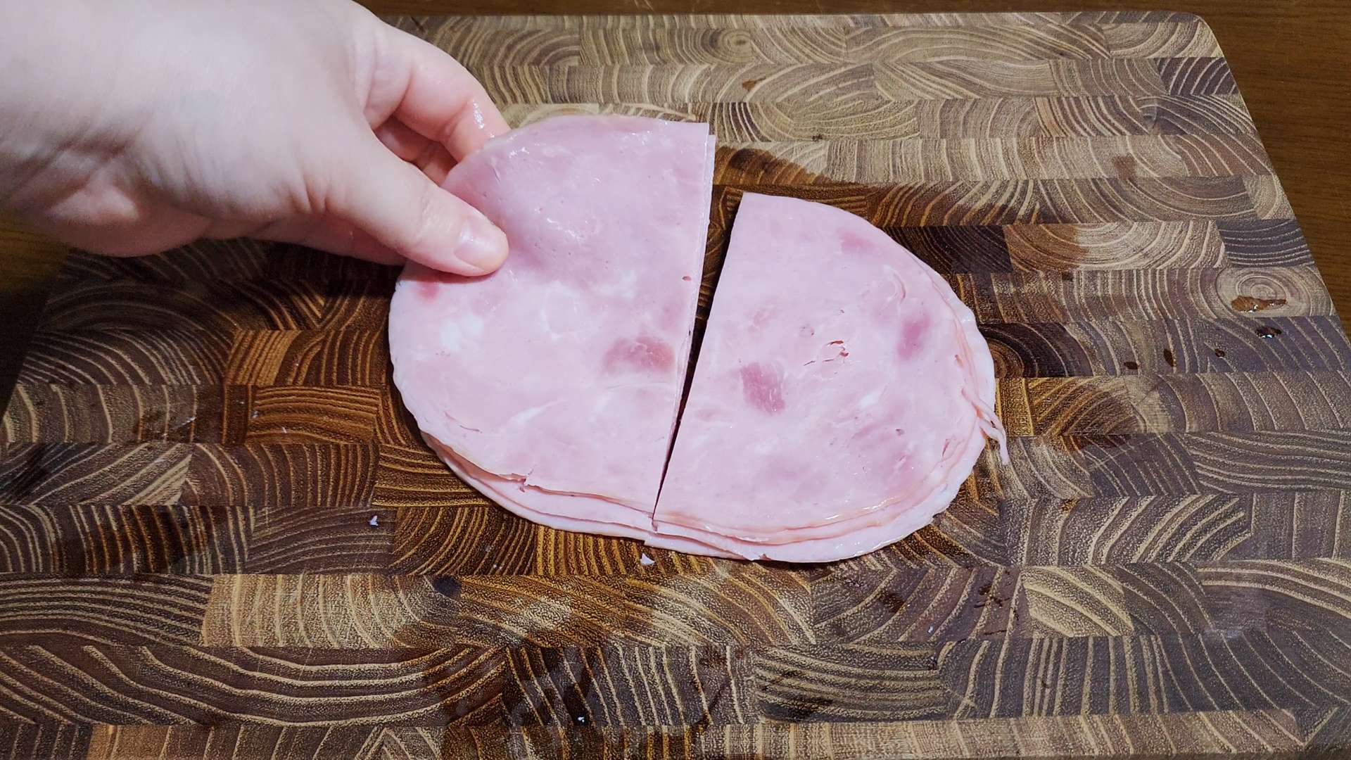 잠봉 슬라이스햄은 반으로 잘라줍니다.