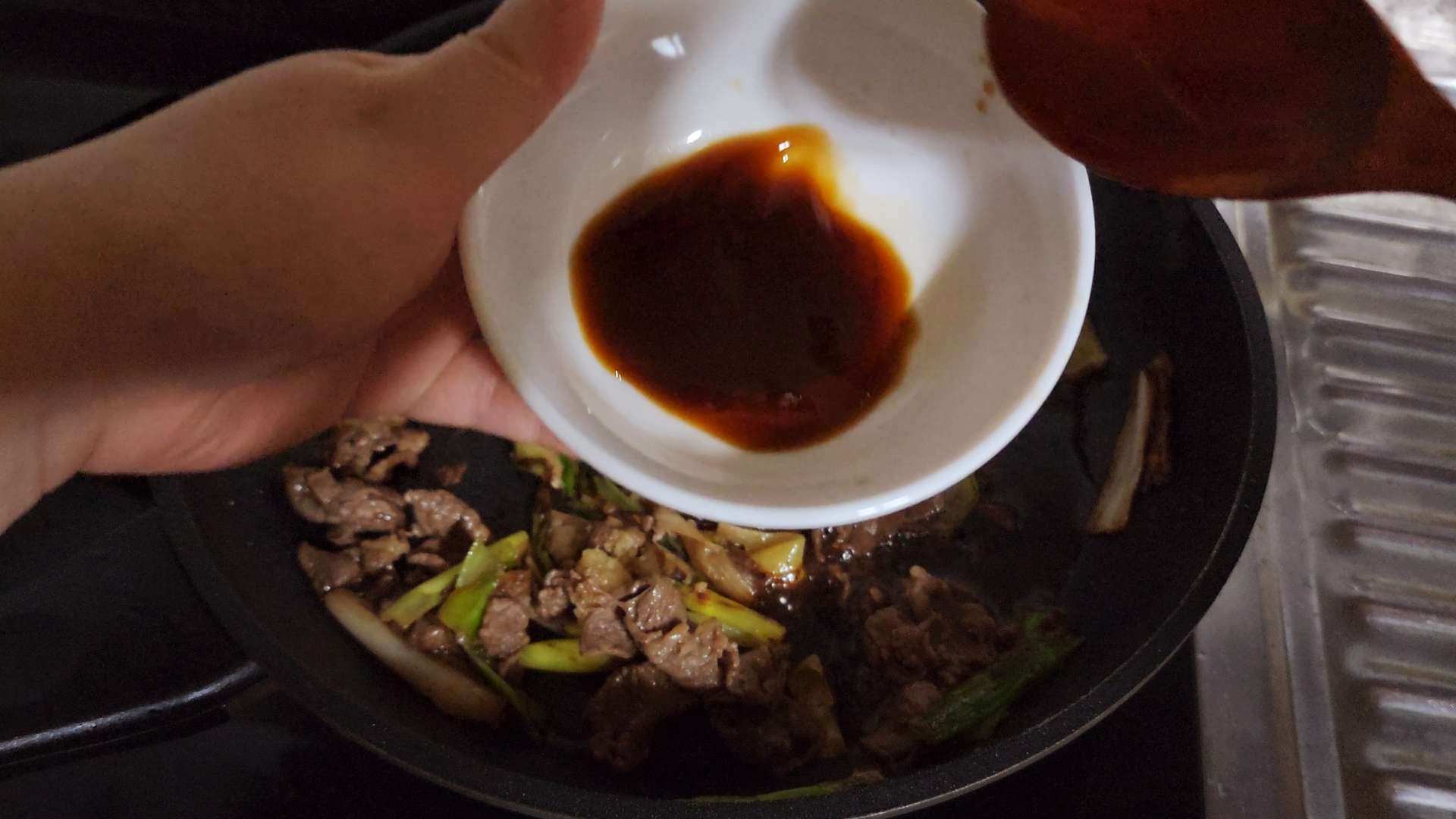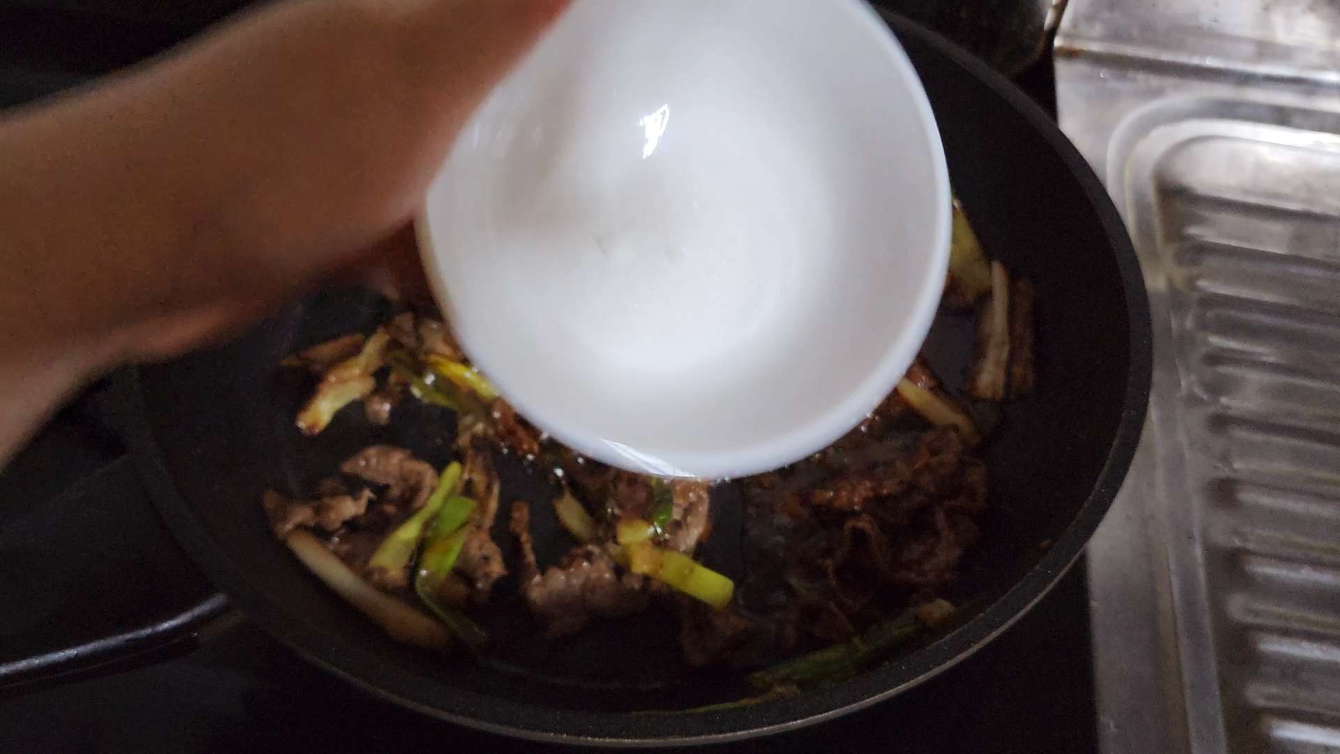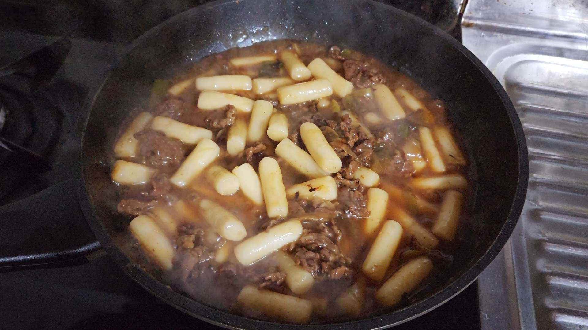 재료: 소고기 불고기용 200g, 쌀 떡볶이떡 500g, 대파 2대, 소금 2꼬집, 참기름 1T, 식용유 1바퀴, 통깨, 진간장 6T, 굴소스 2T, 설탕 2T, 다진마늘 1T,