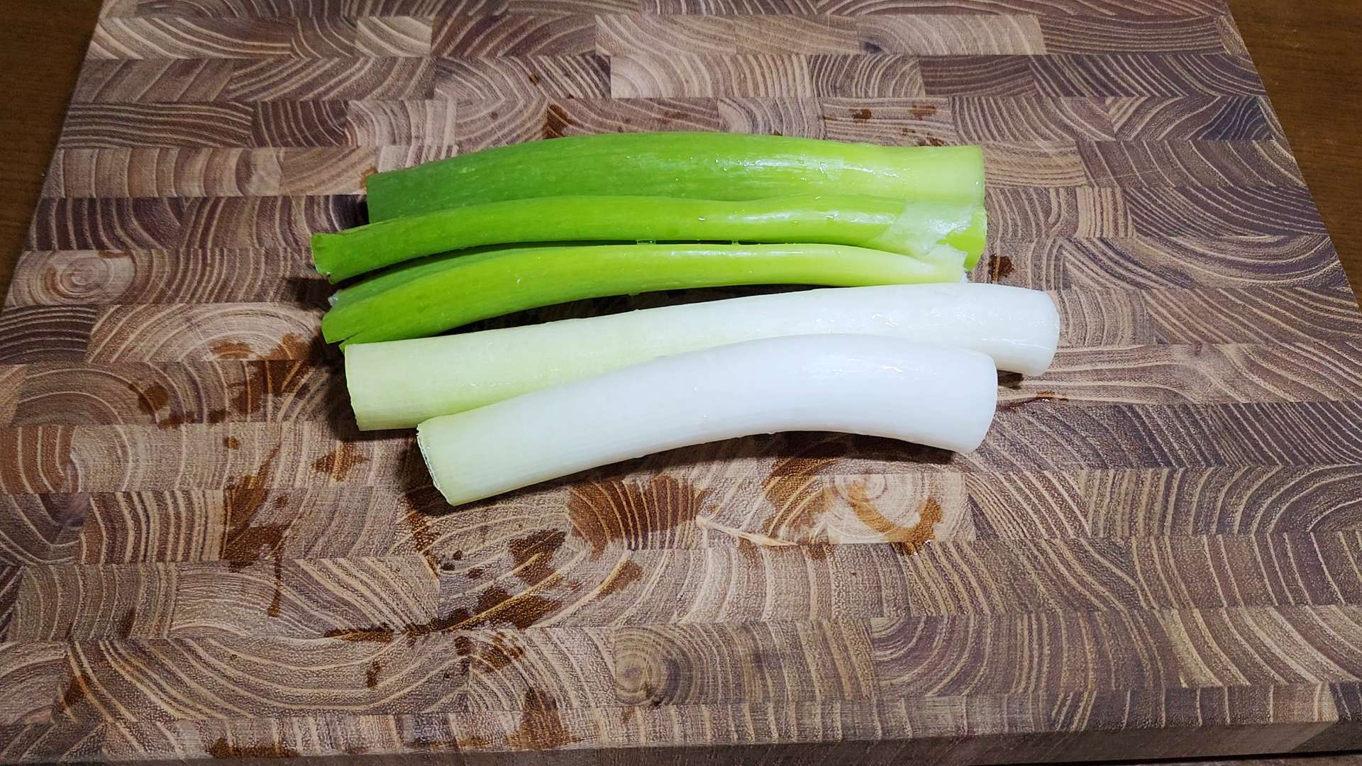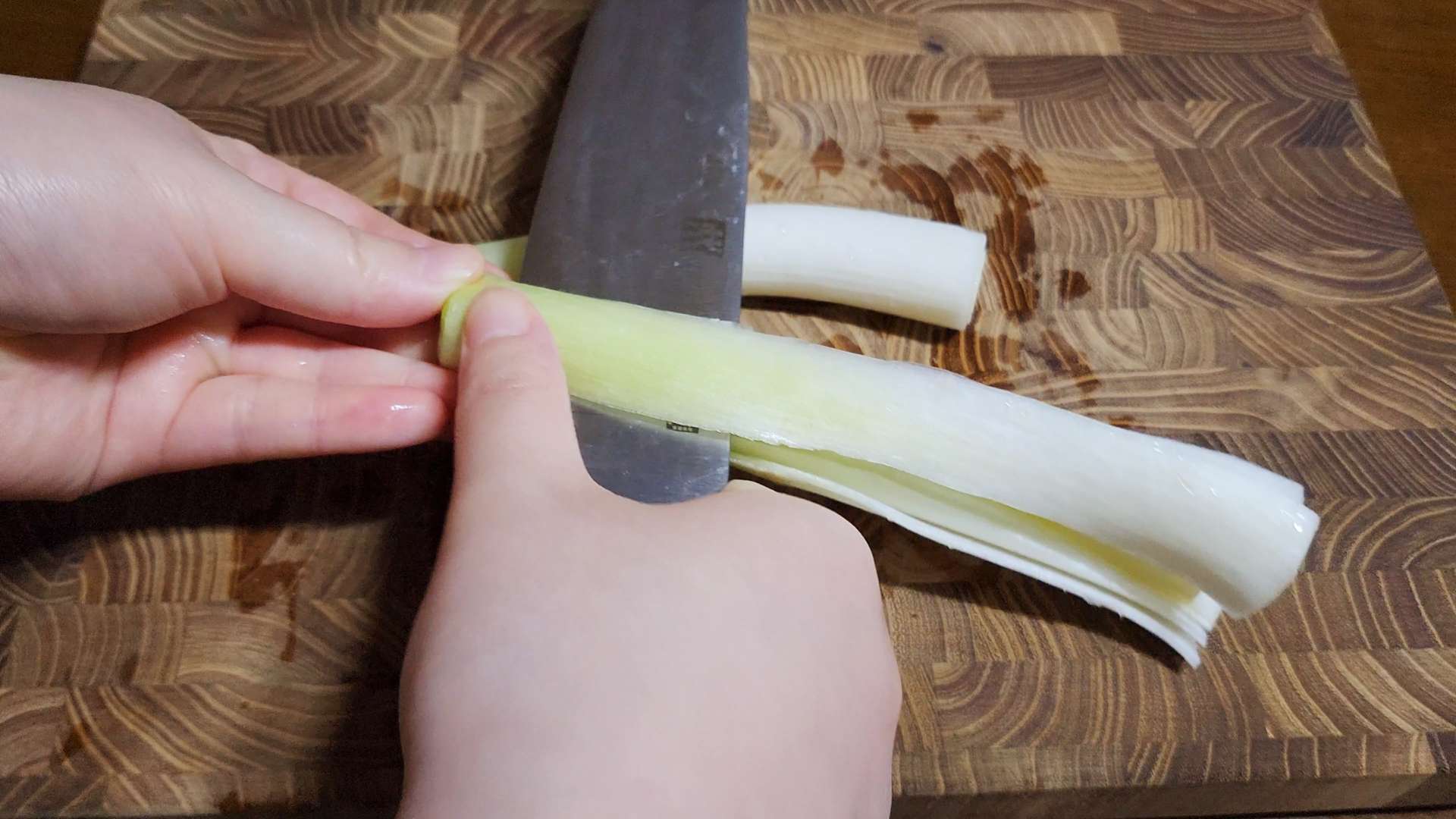 대파는 반으로 자르고 5cm 길이로 잘라줍니다.