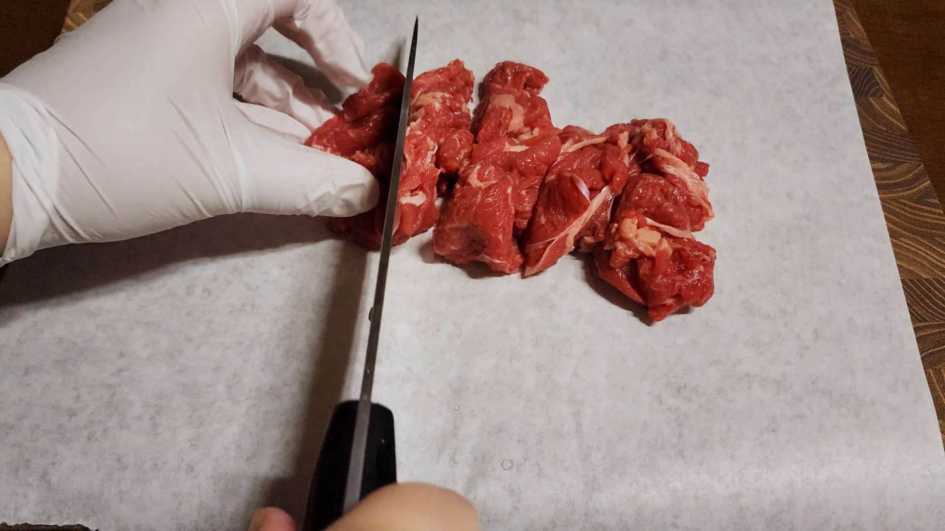 식용유, 소고기, 소금 2꼬집 넣고 볶아줍니다.