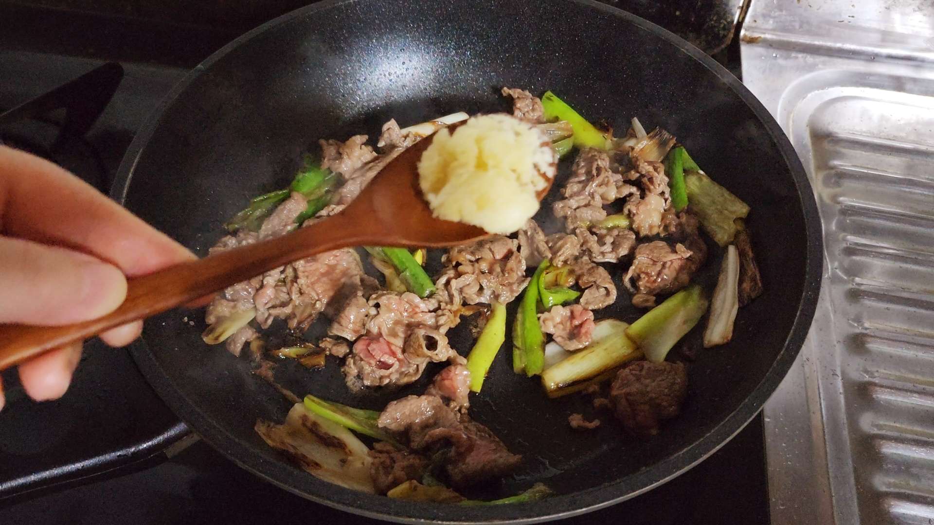 중불로 줄이고 다진마늘 1T를 넣고 섞어줍니다.