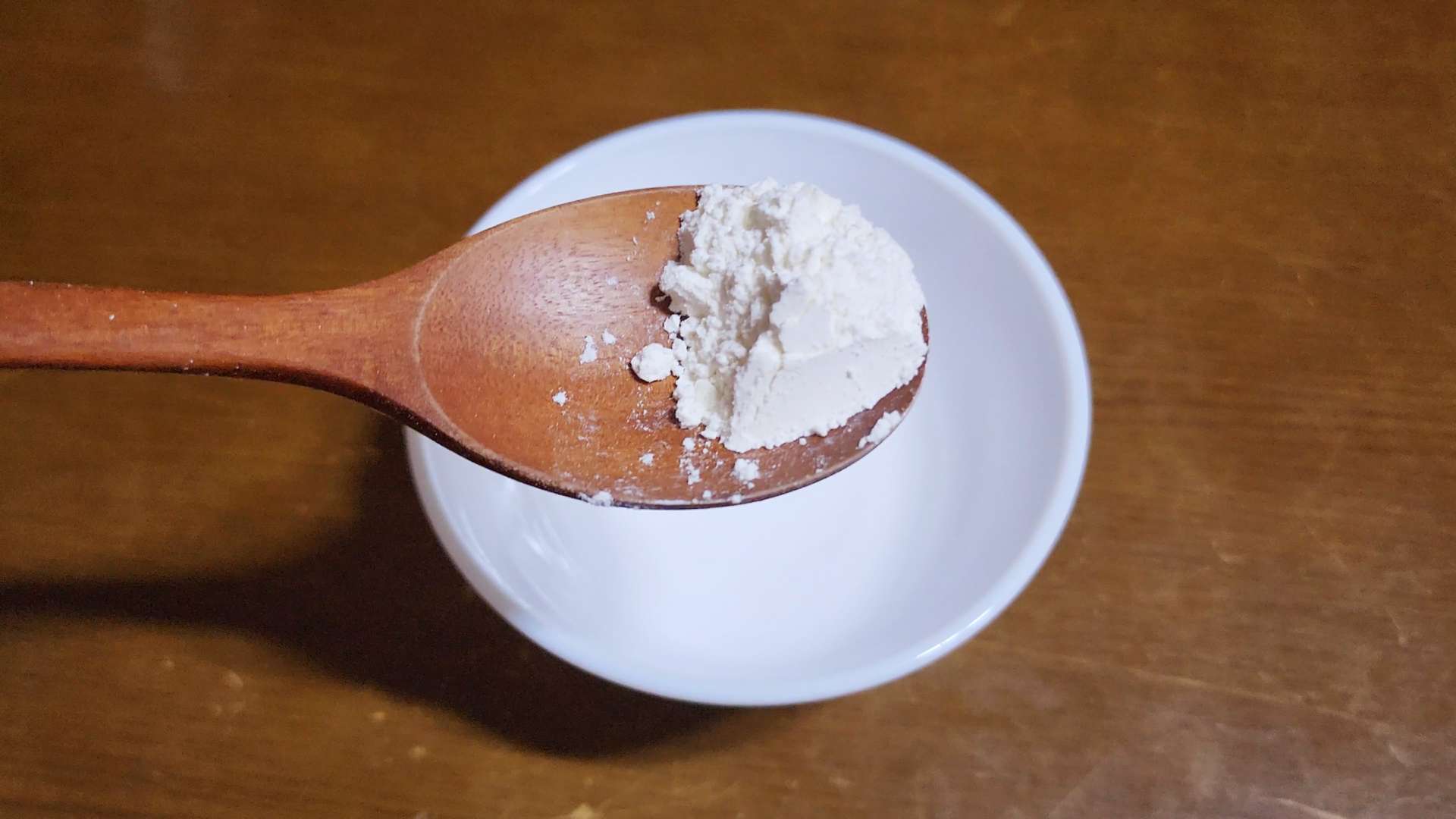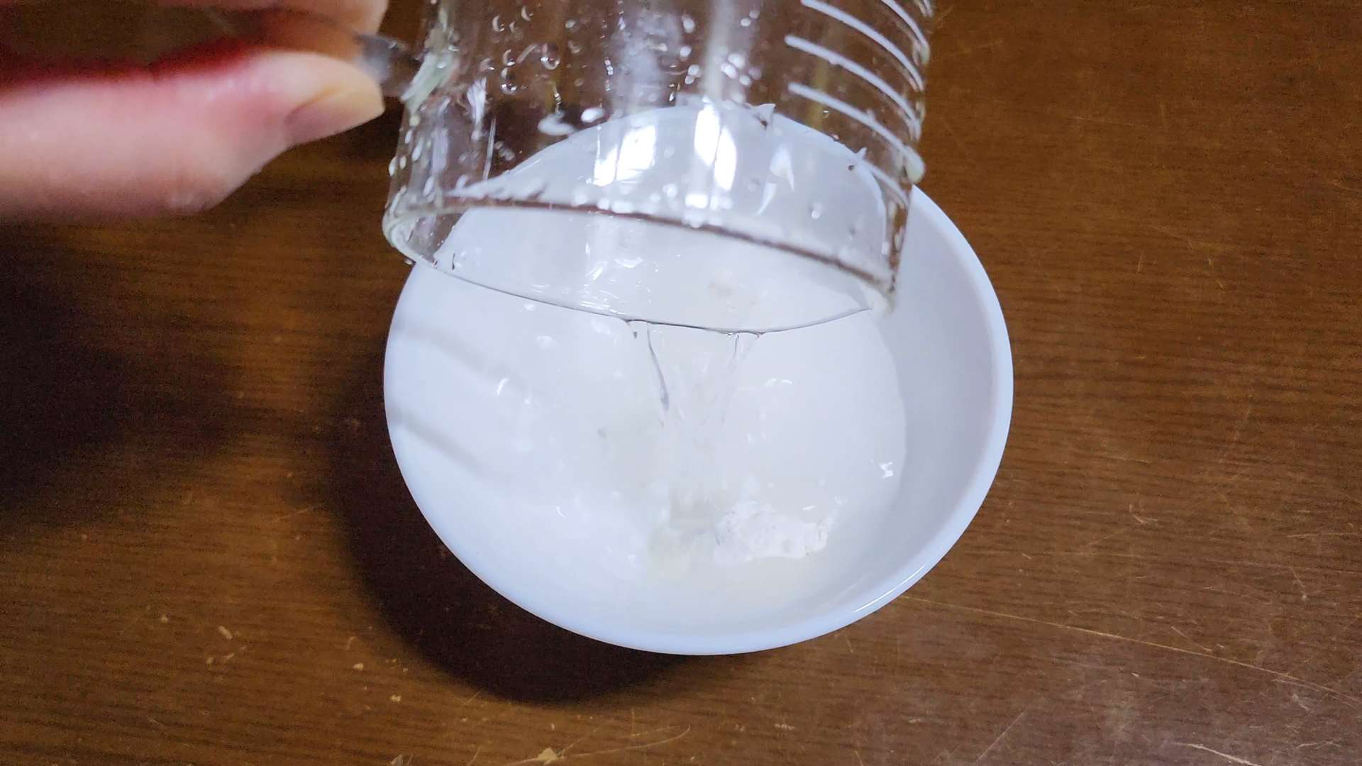 볼에 튀김가루 1t, 물 50ml 섞어 전분물을 만들어 줍니다.