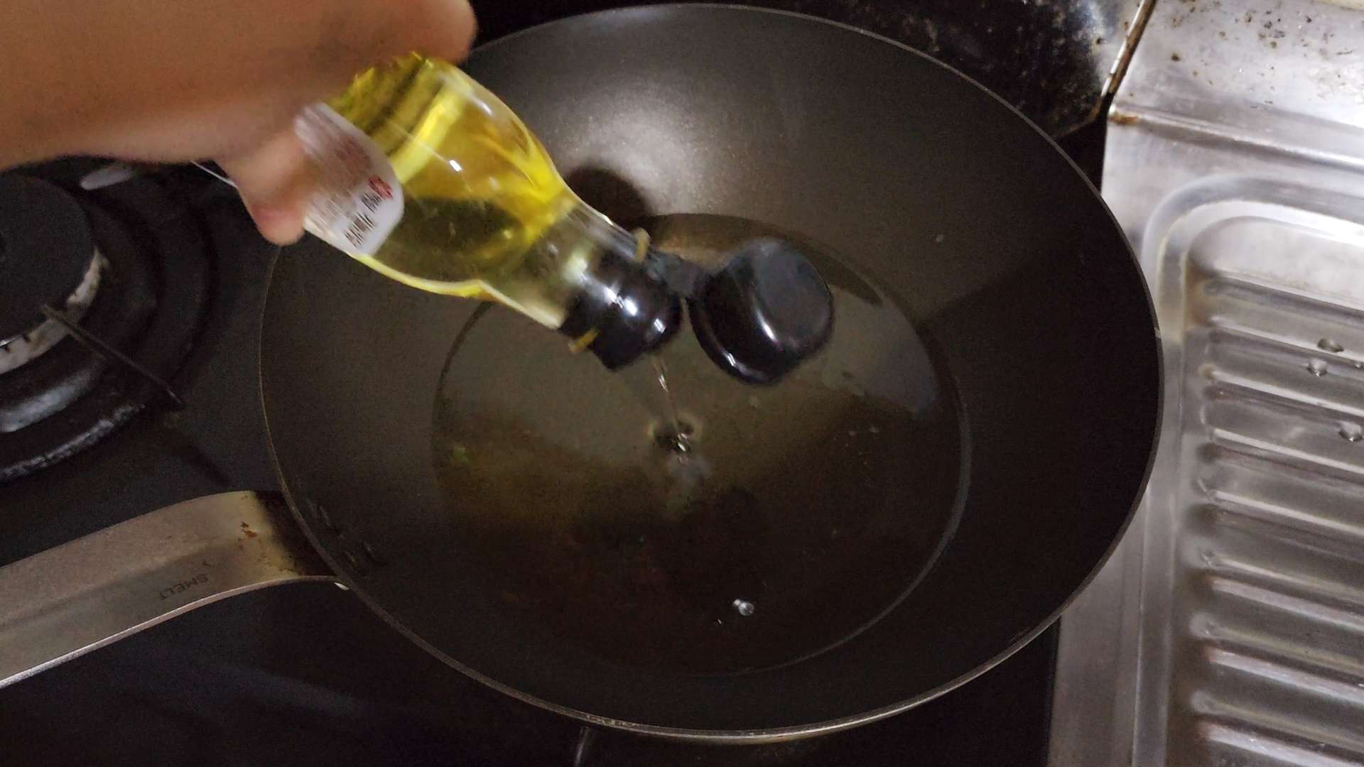 팬에 식용유 500ml 를 넣고 강불로 예열해 줍니다.