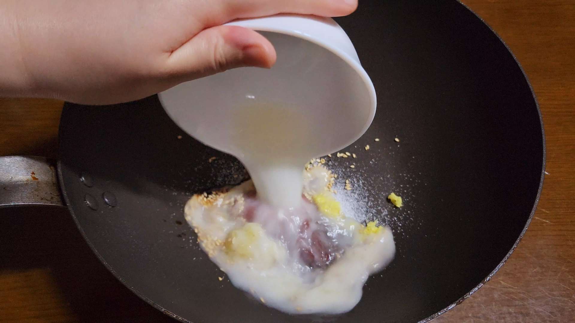 * 팬 바닥을 긁었을 때 길이 생길 때까지 졸여주세요.