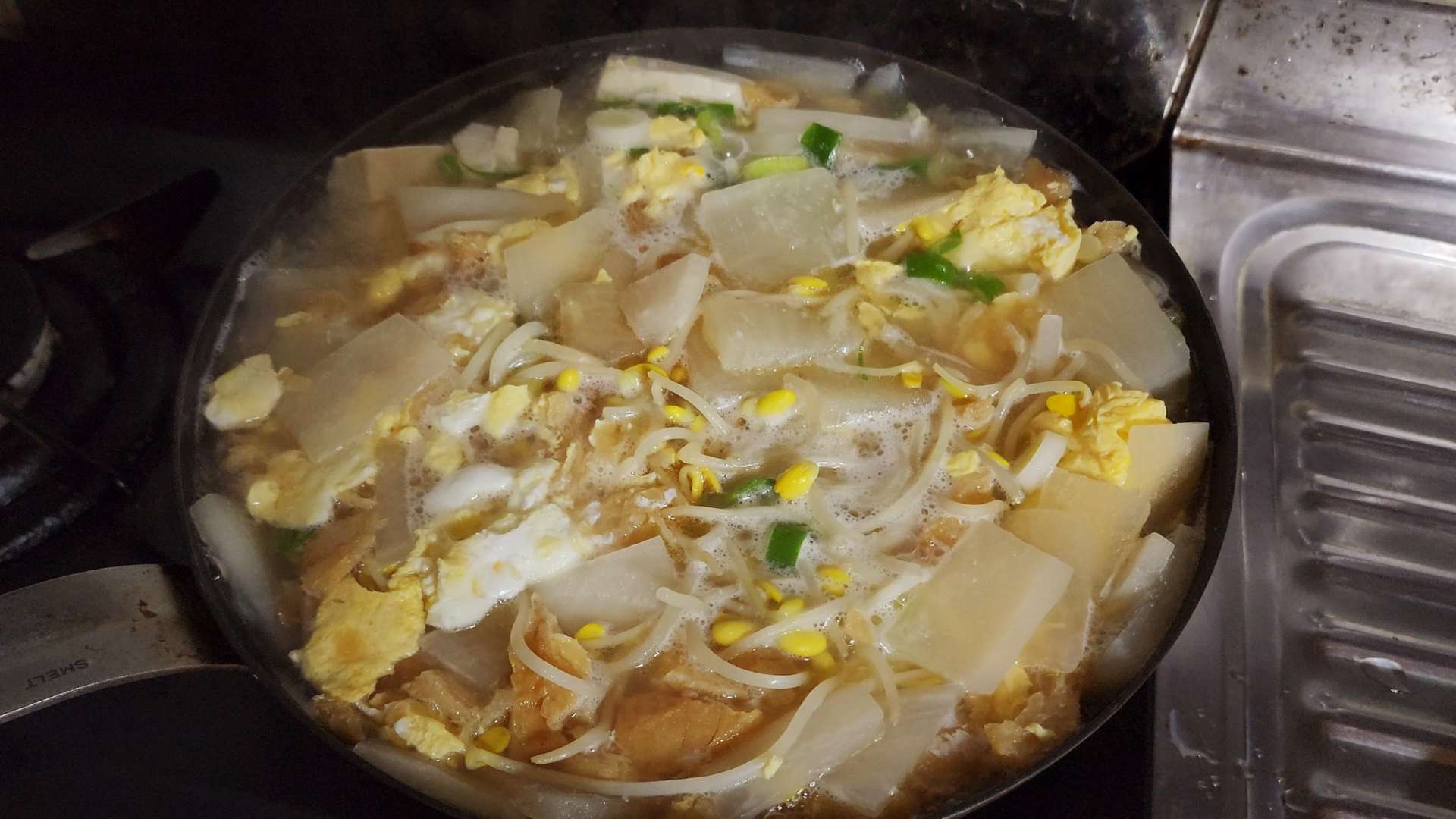 재료: 황태채 50g, 무 500g, 두부 1/2모,