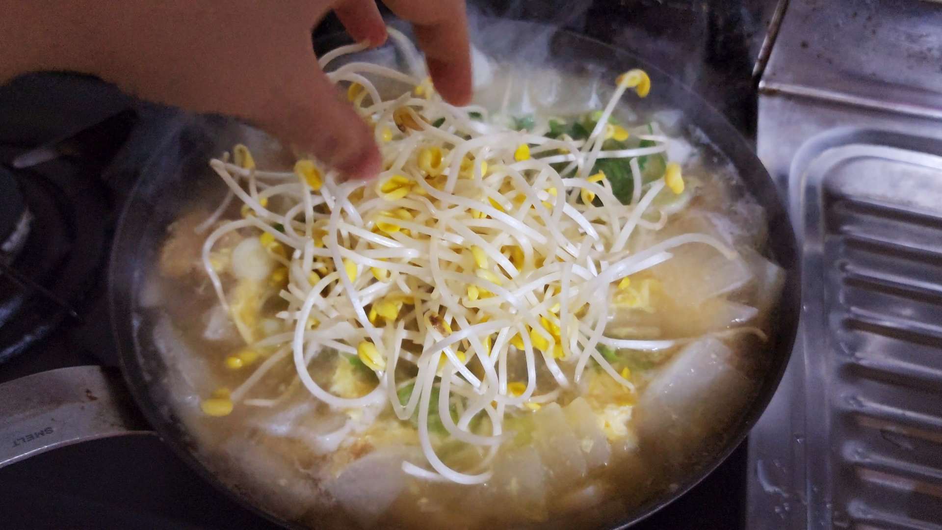 대파, 씻은 콩나물을 넣고 뚜껑을 닫아 3분 끓여줍니다.