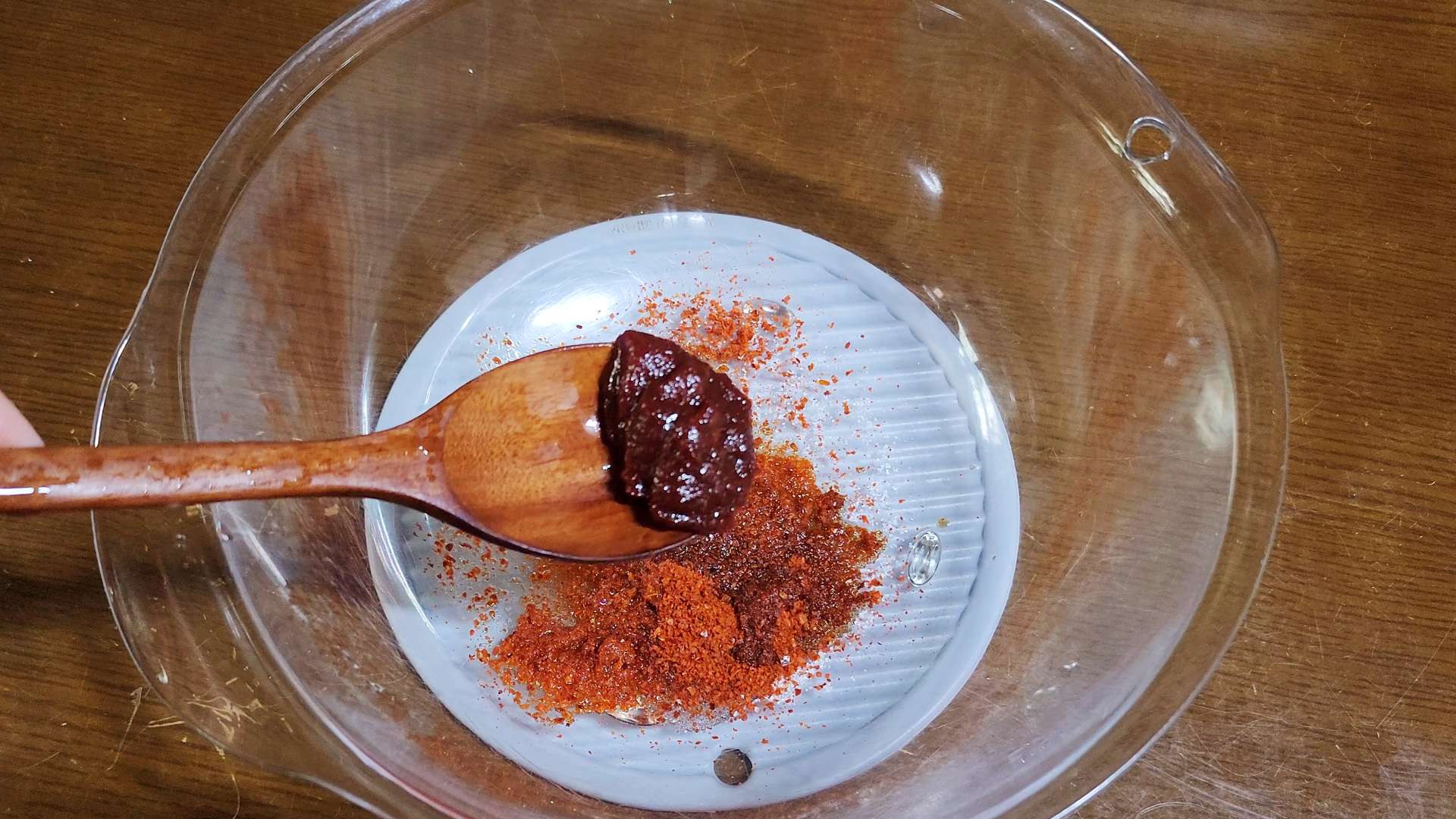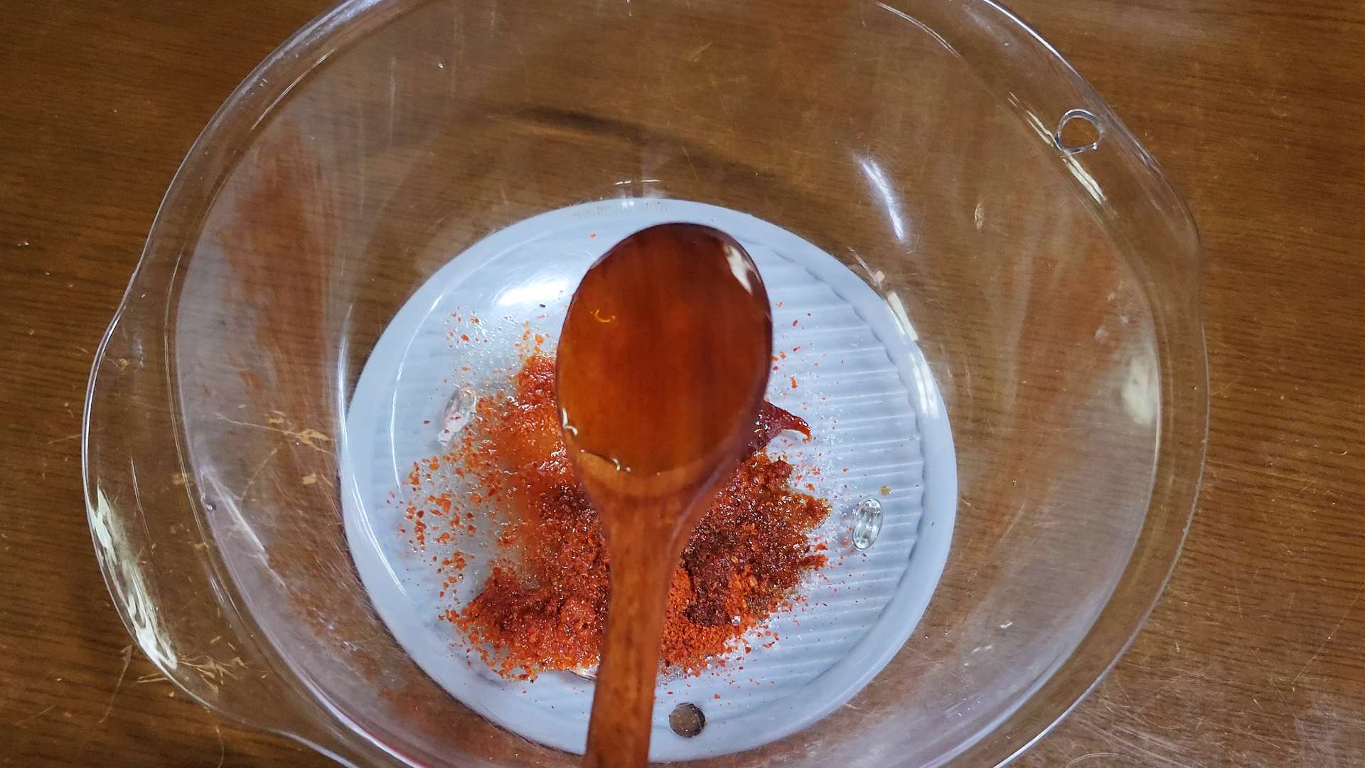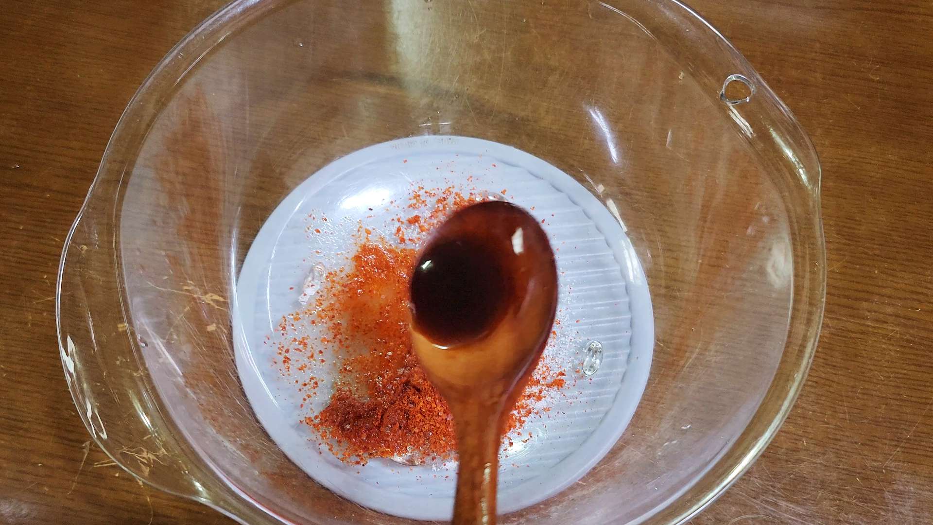 설탕 0.5T, 고춧가루 0.5T, 식초 1T, 간장 0.5T,