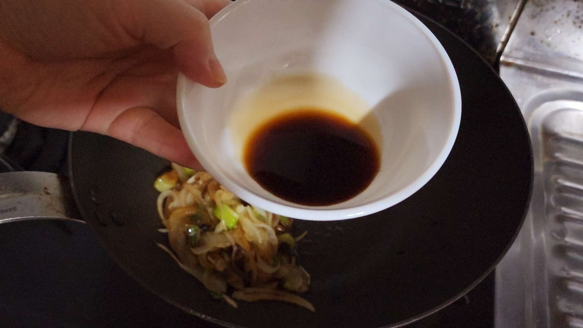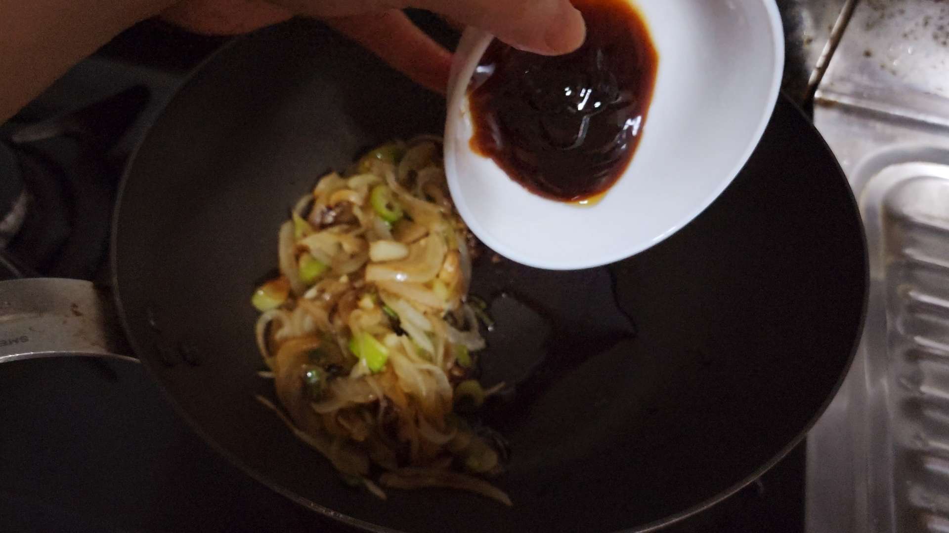 진간장 2T, 굴소스 2T를 빈 부분에 넣고 잔열로 바르르 끓여줍니다.