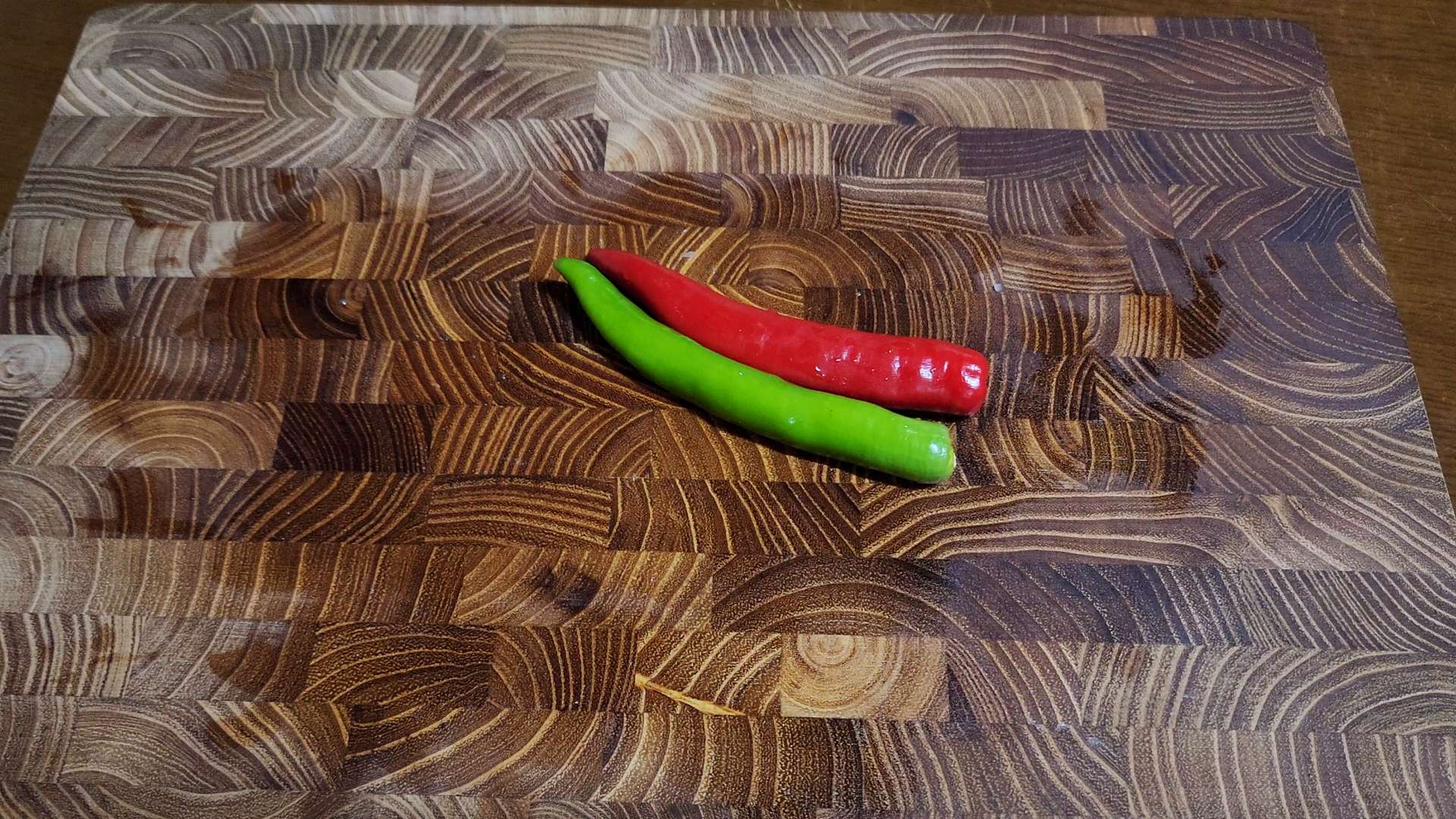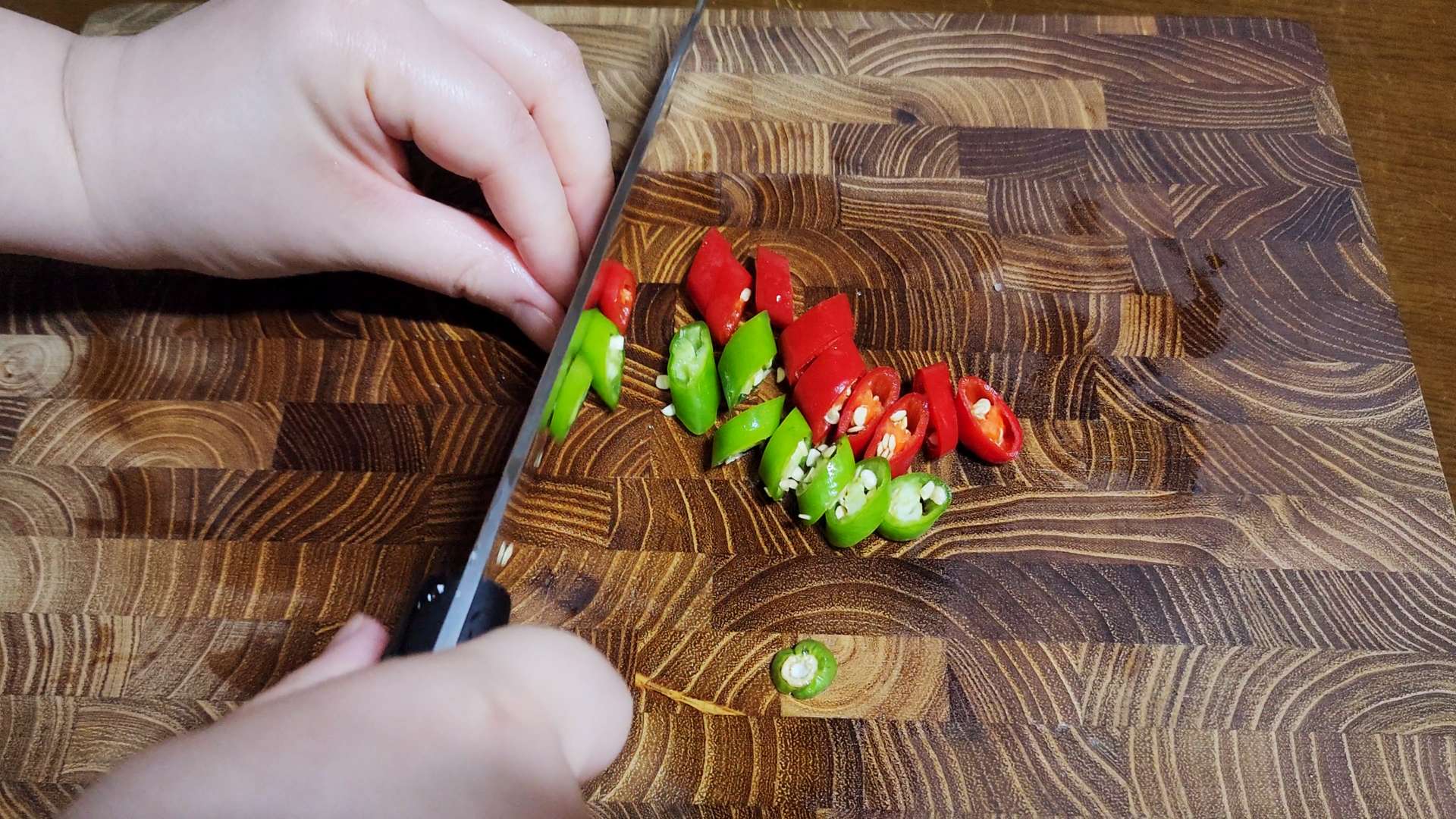 청양고추, 홍고추는 어슷 썰어줍니다.