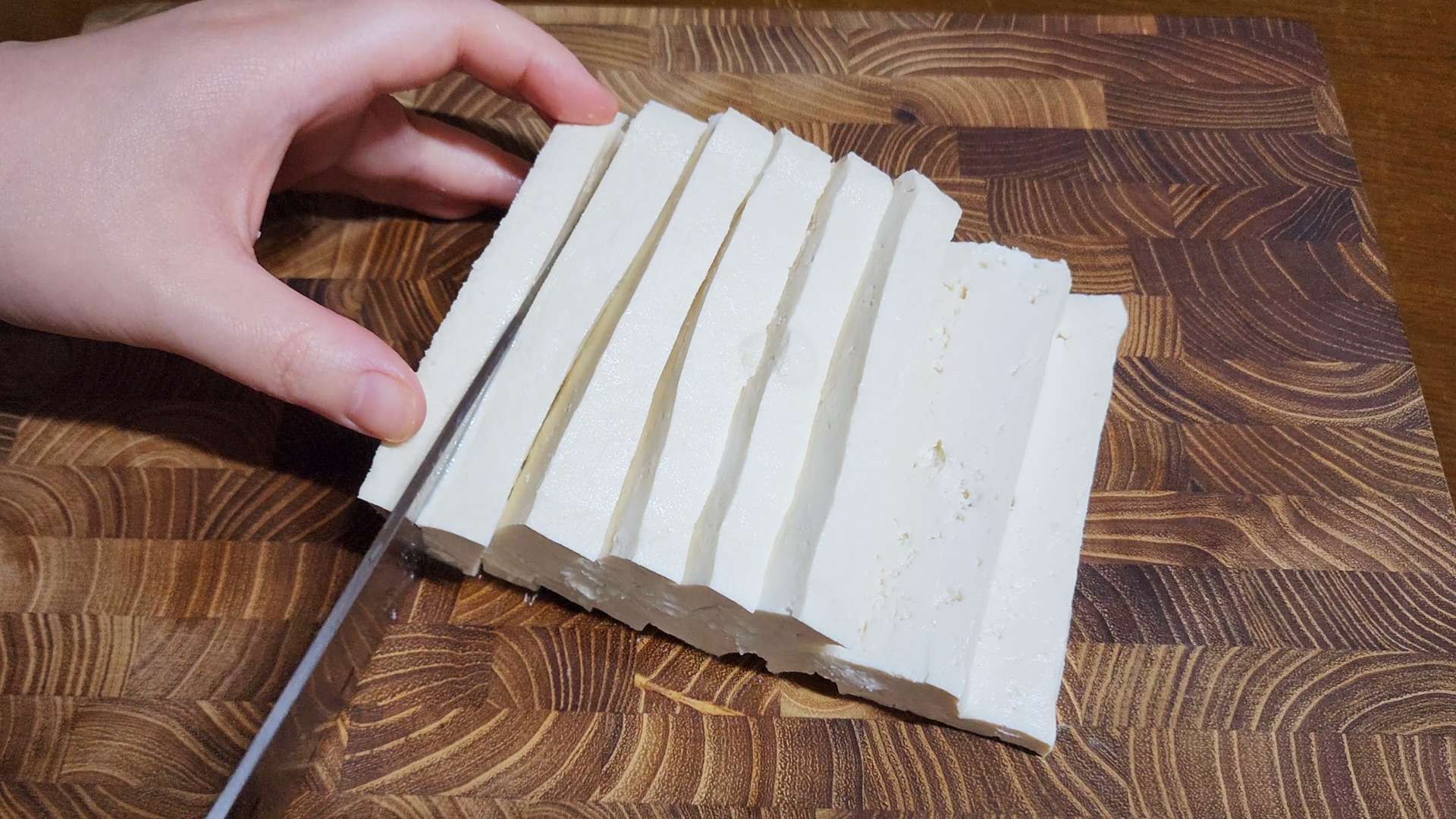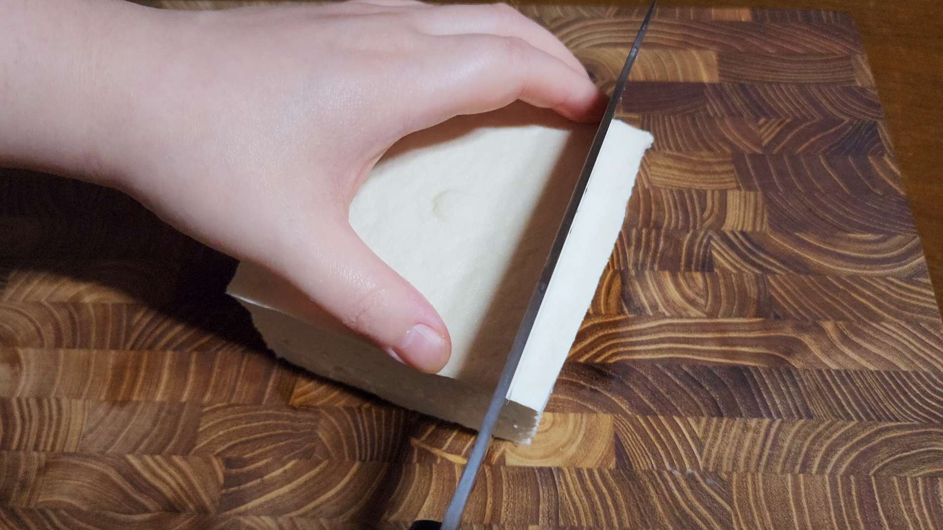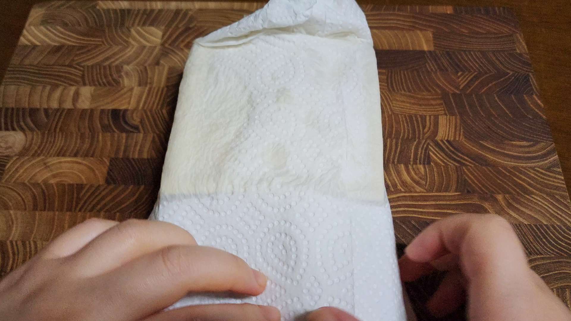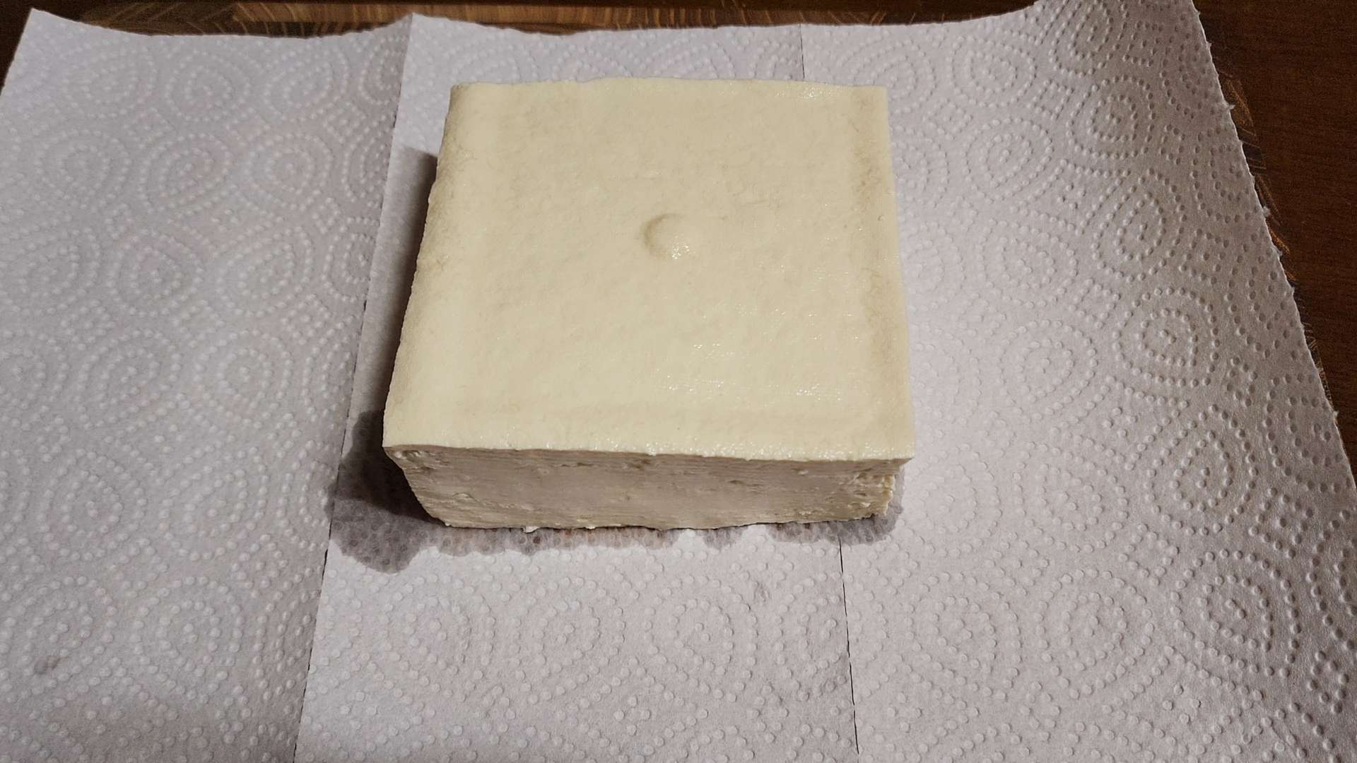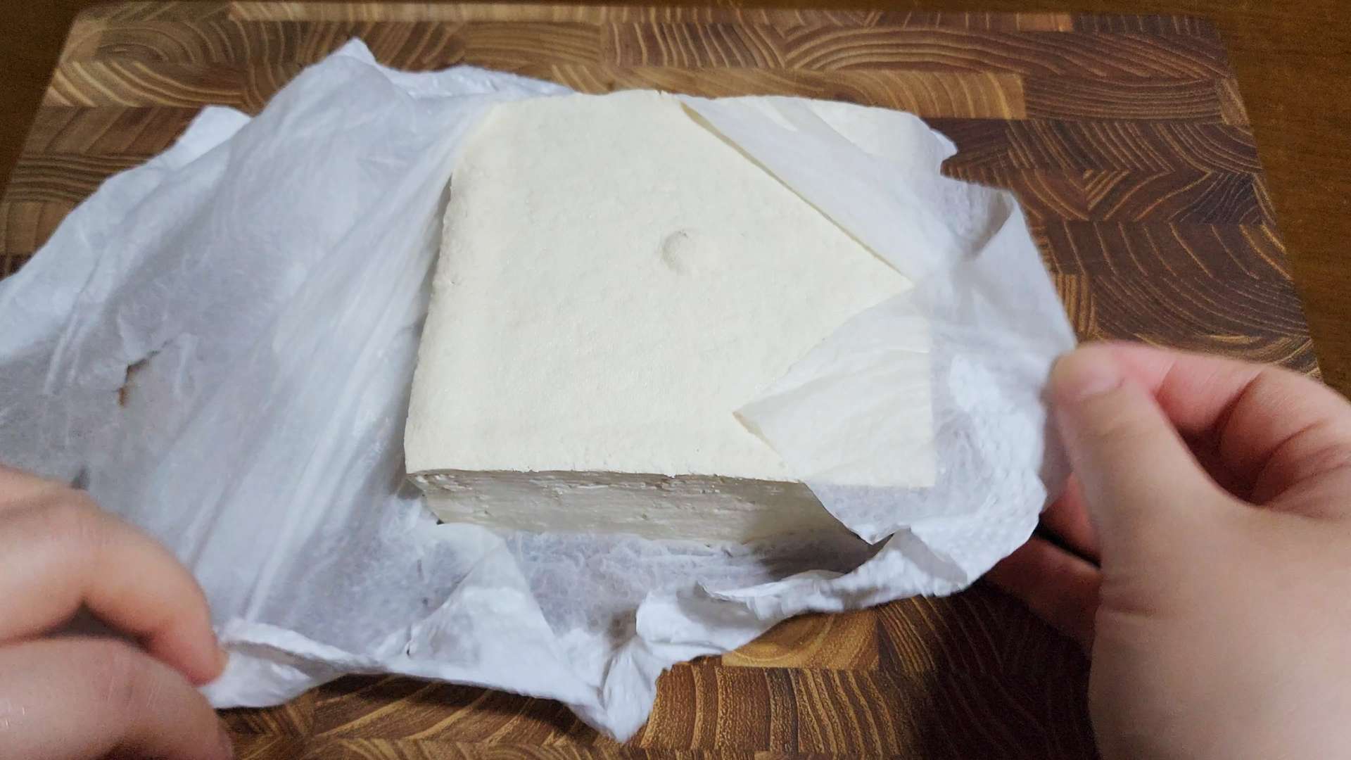 두부를 키친타월로 덮어 물기를 제거해줍니다.