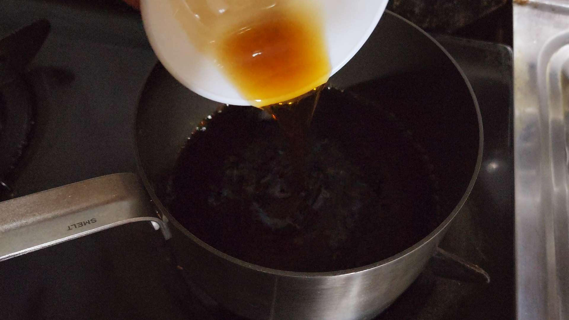 냄비에 진간장 100ml, 물 100ml, 식초 100ml,