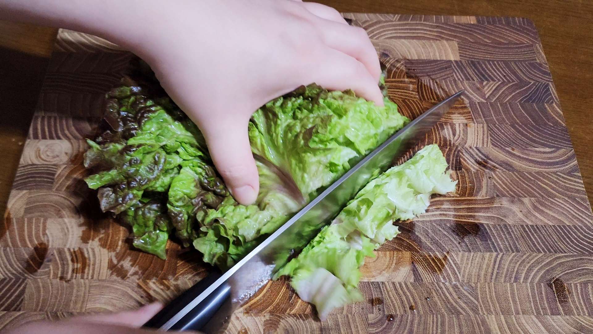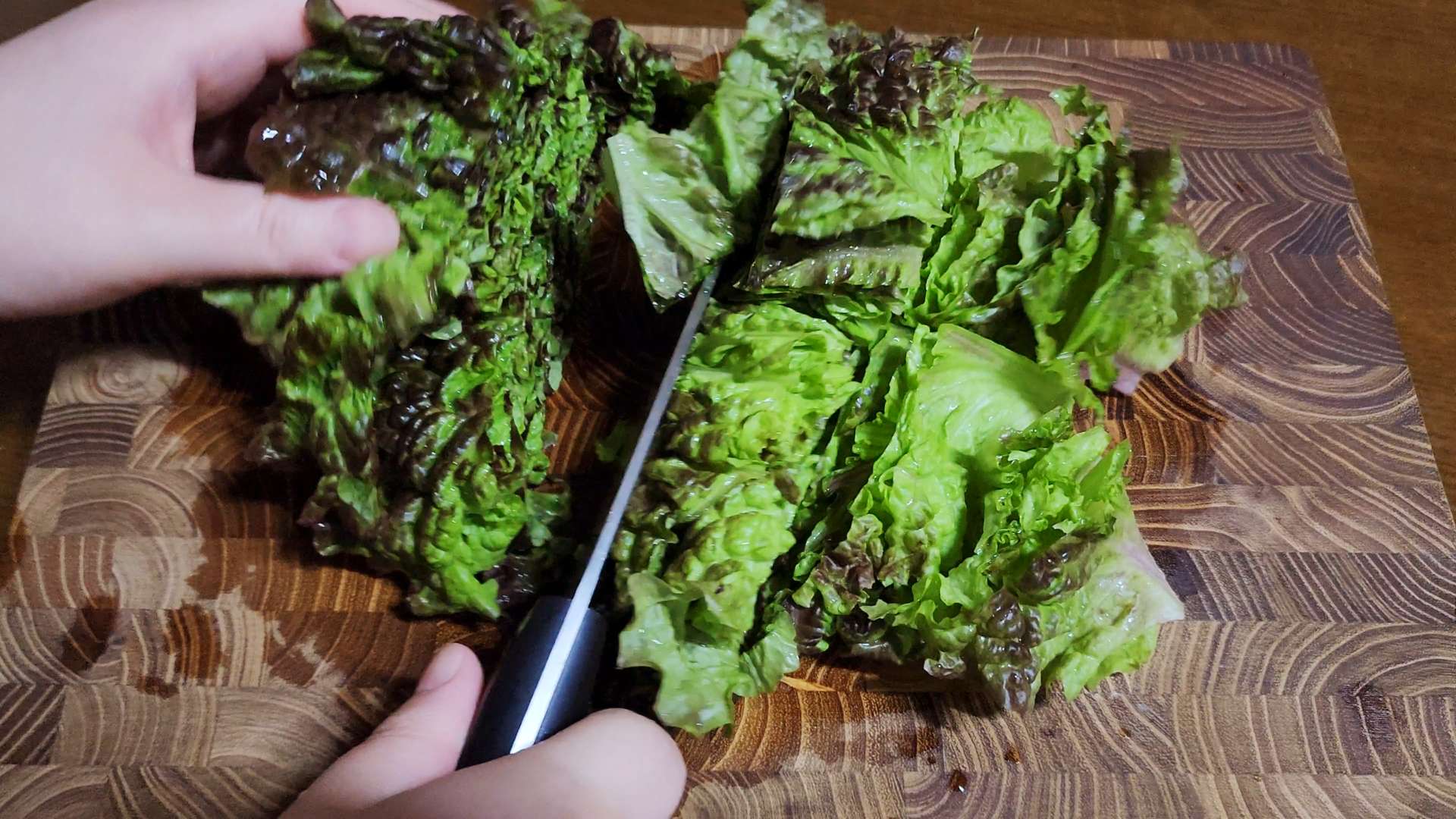 상추는 깨끗이 씻고 물기를 제거한 후 끝을 잘라냅니다.