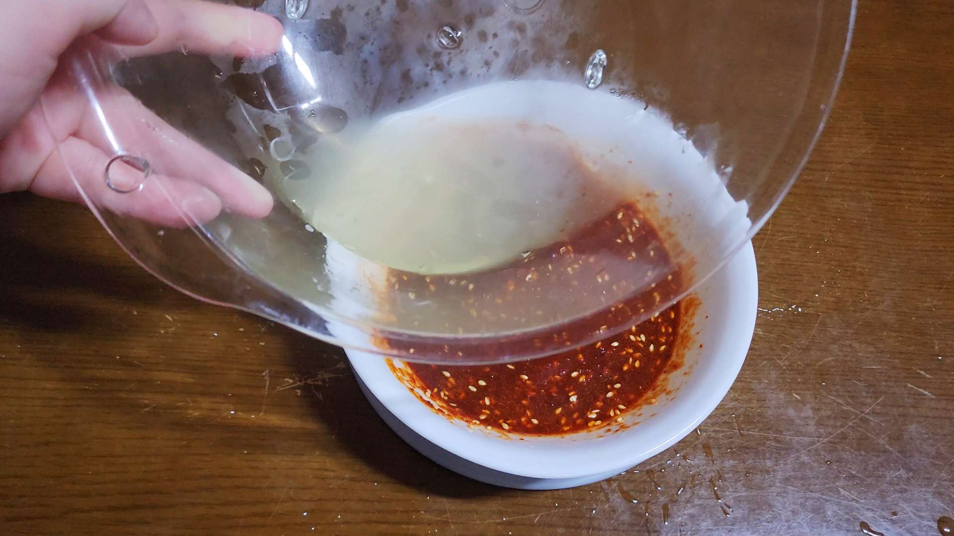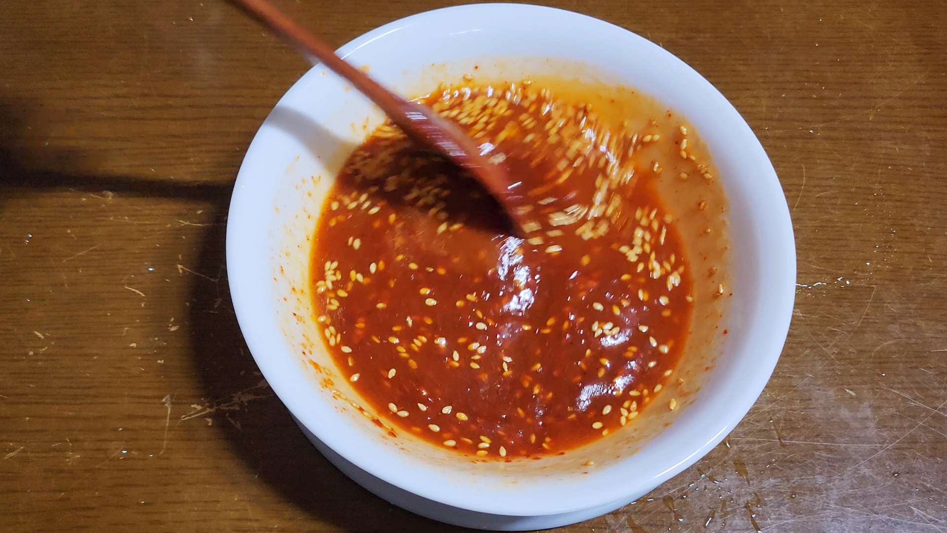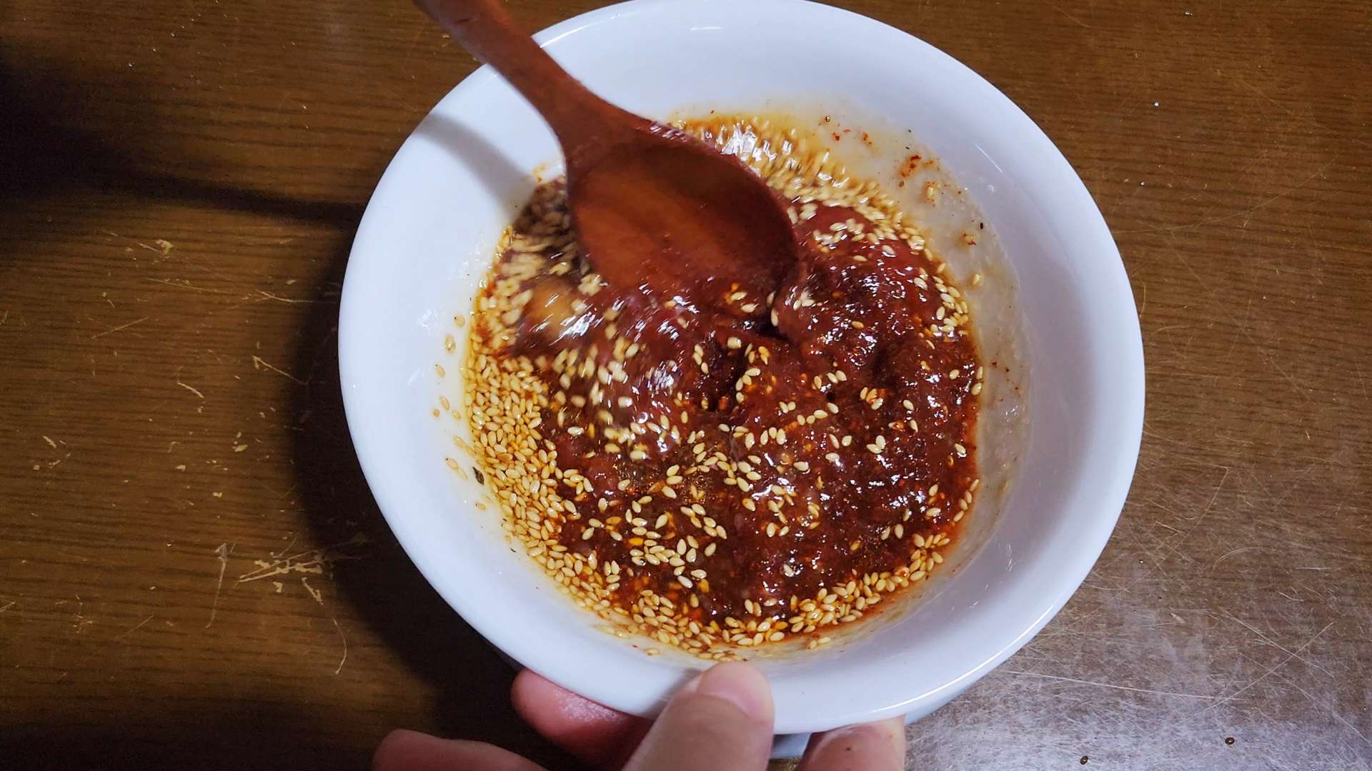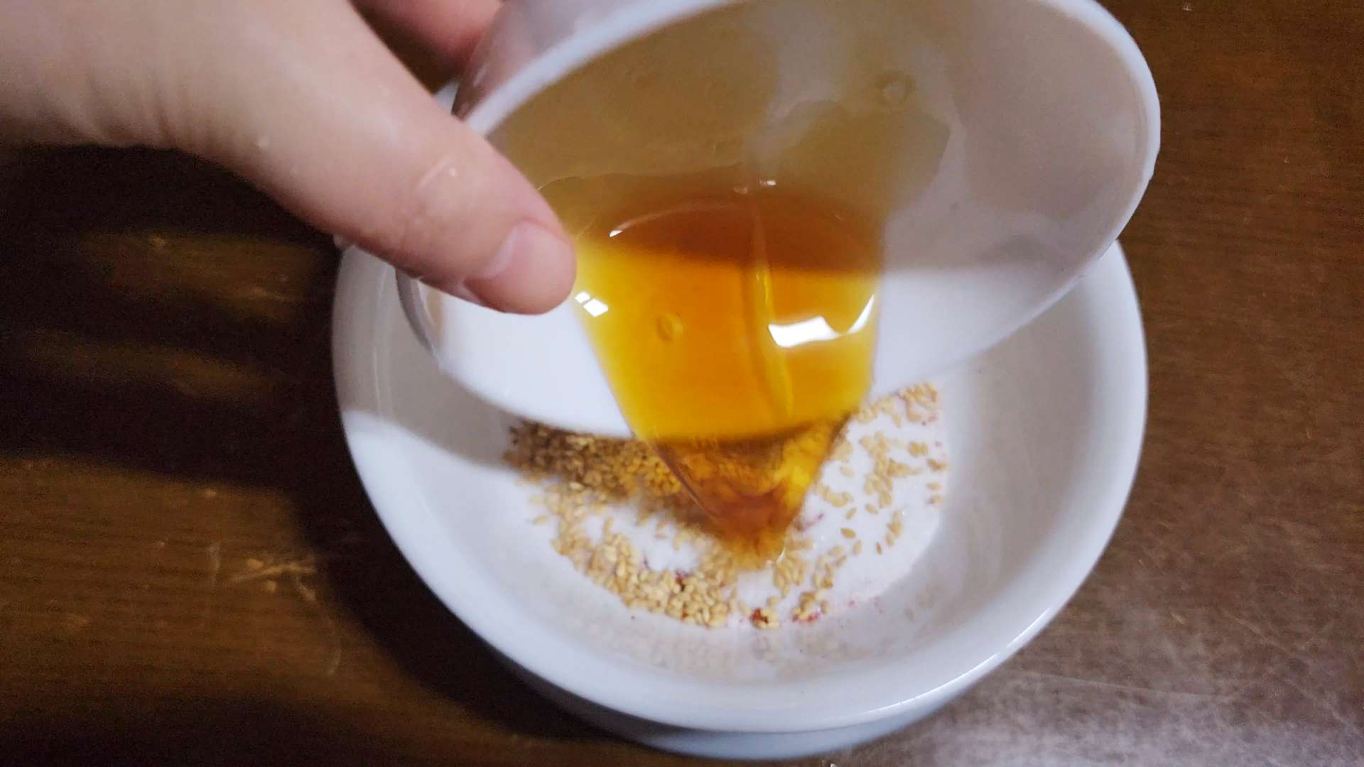 고춧가루 2T, 설탕 4T, 통깨 2T, 참기름 4T,