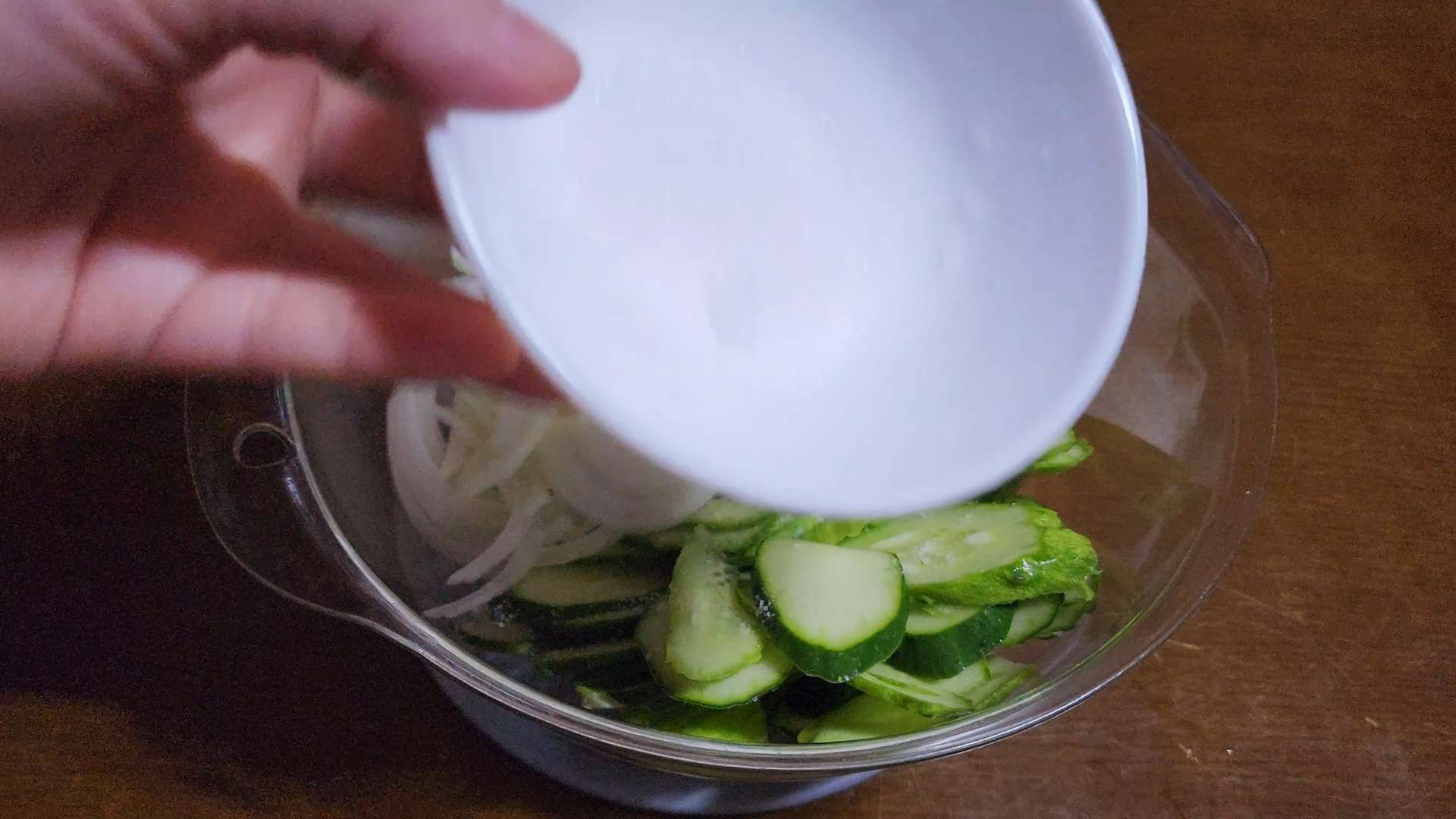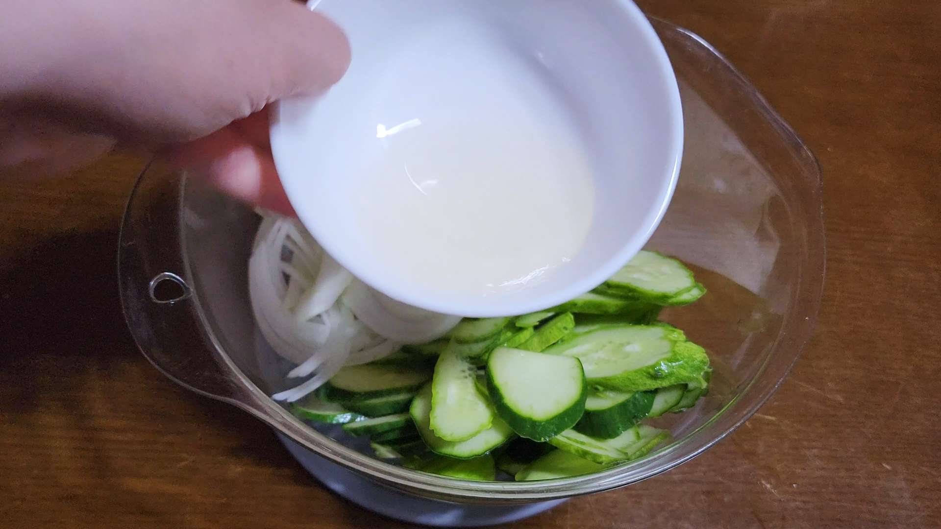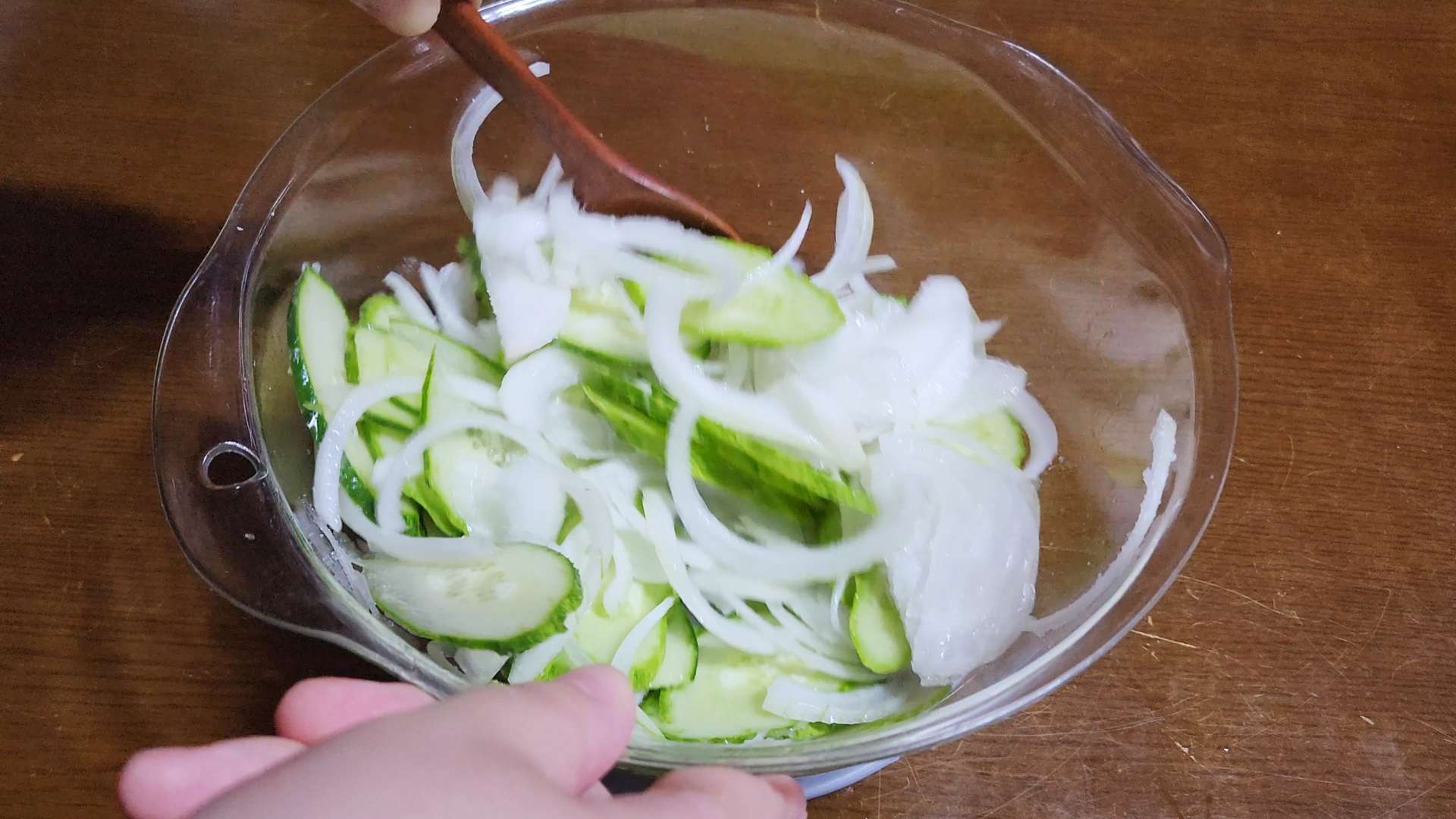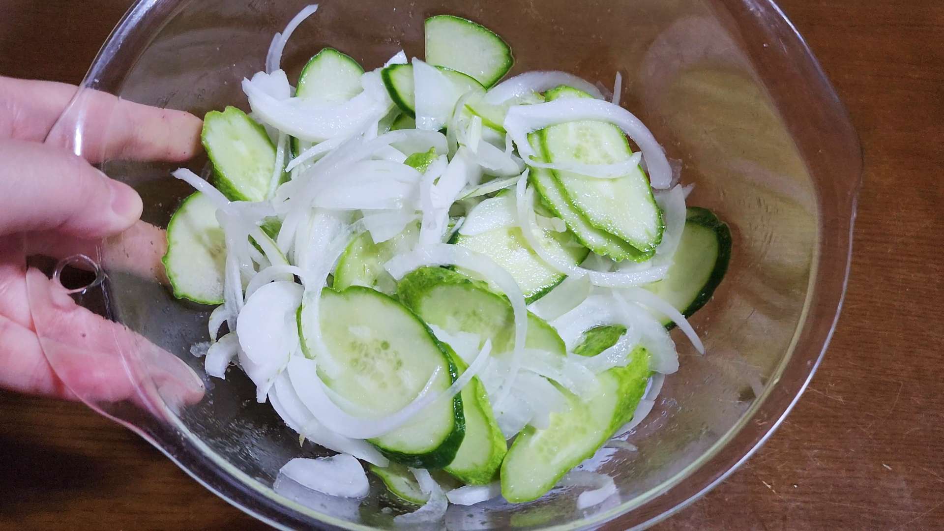 오이양파절임: 식초 4T, 맛소금 4꼬집, 설탕 2T