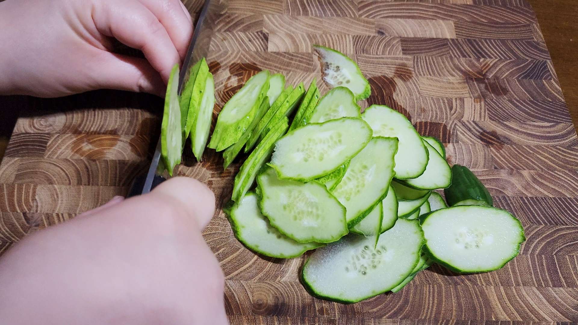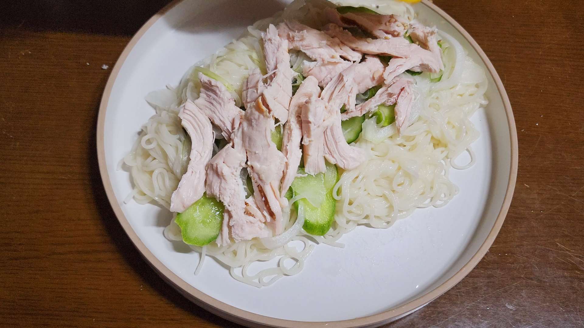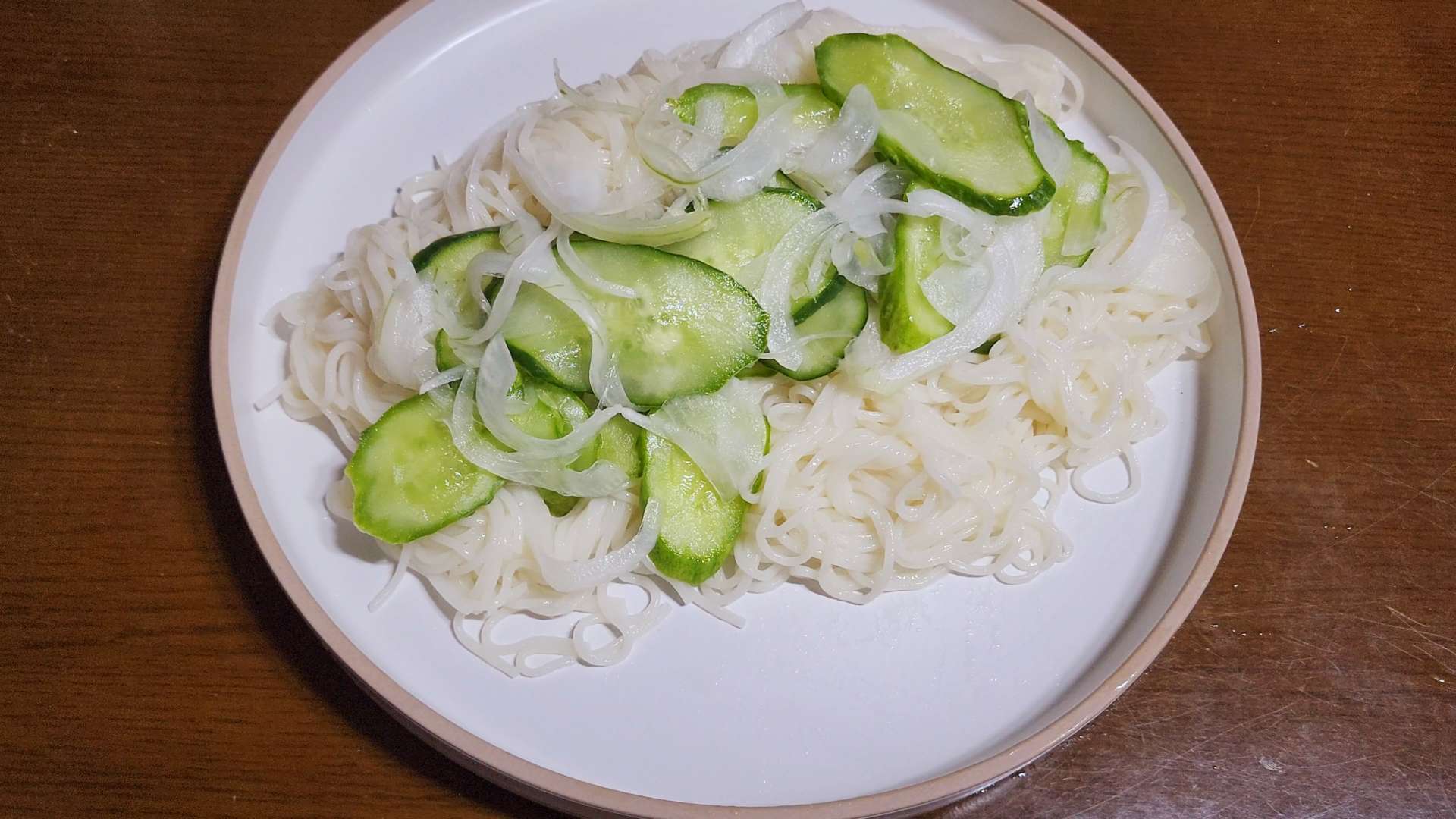 재료: 소면 2인분, 오이 1개, 양파 1/2개,
