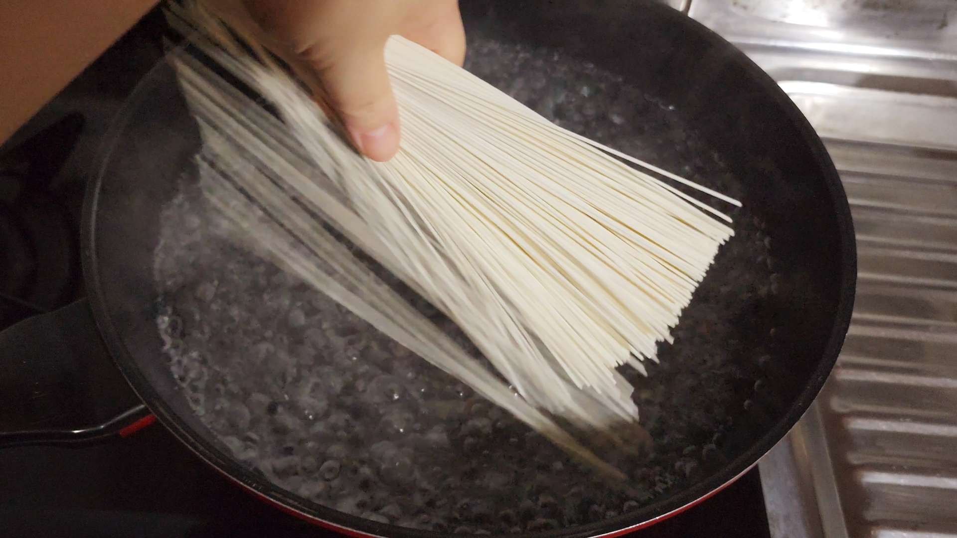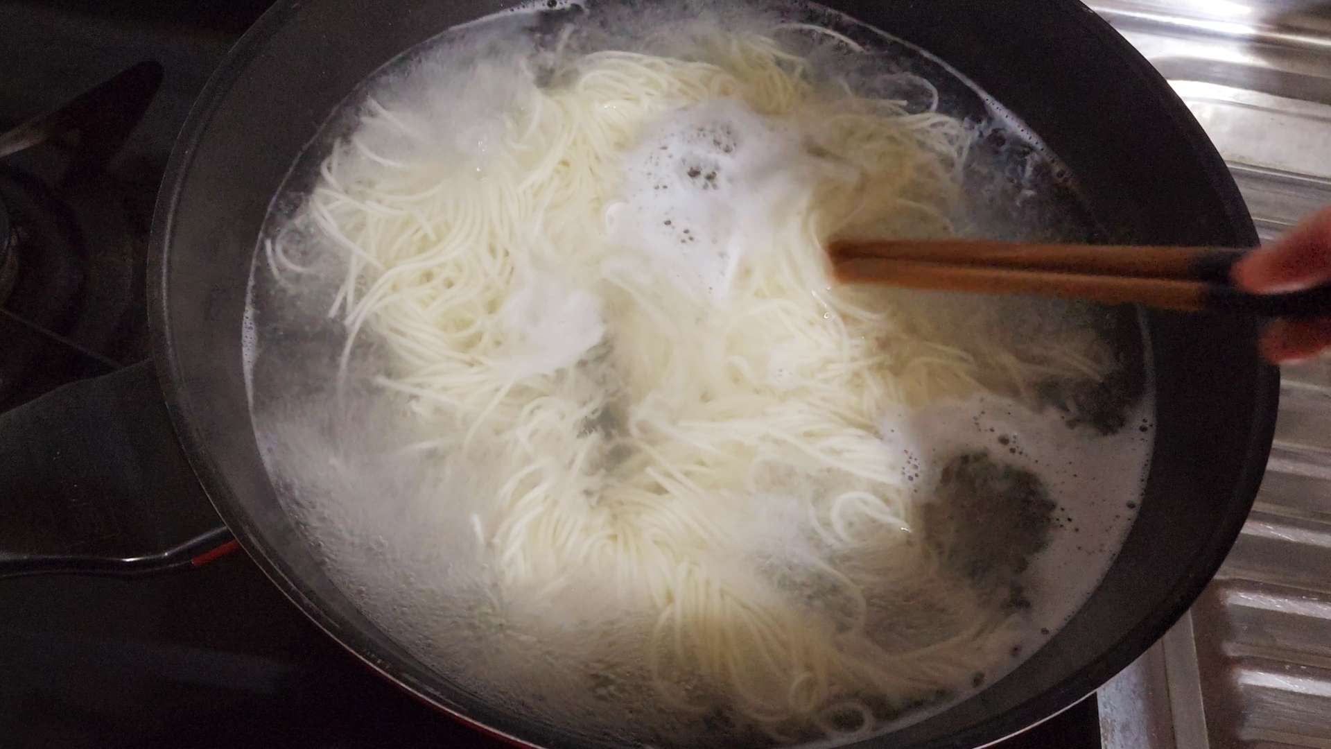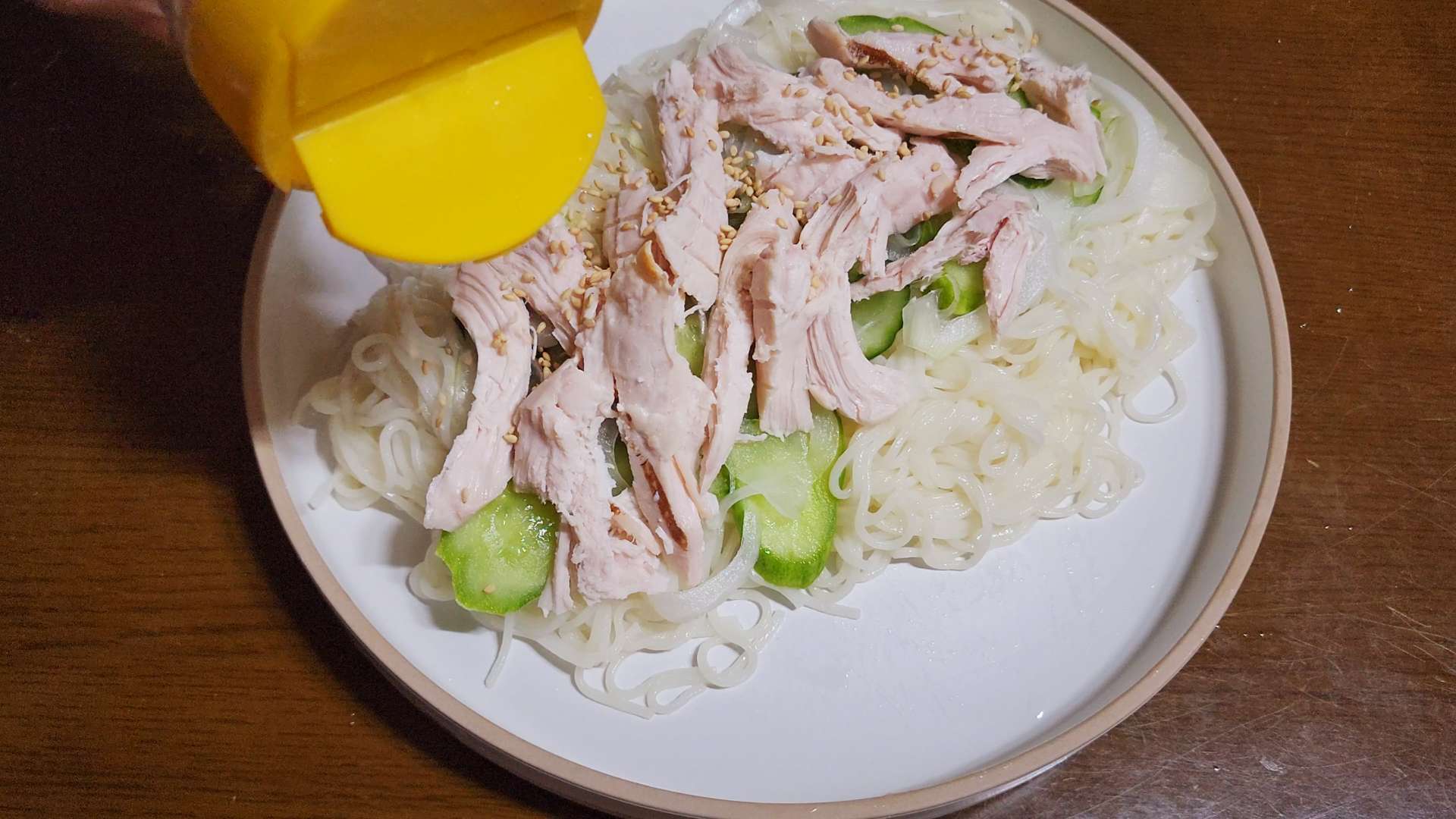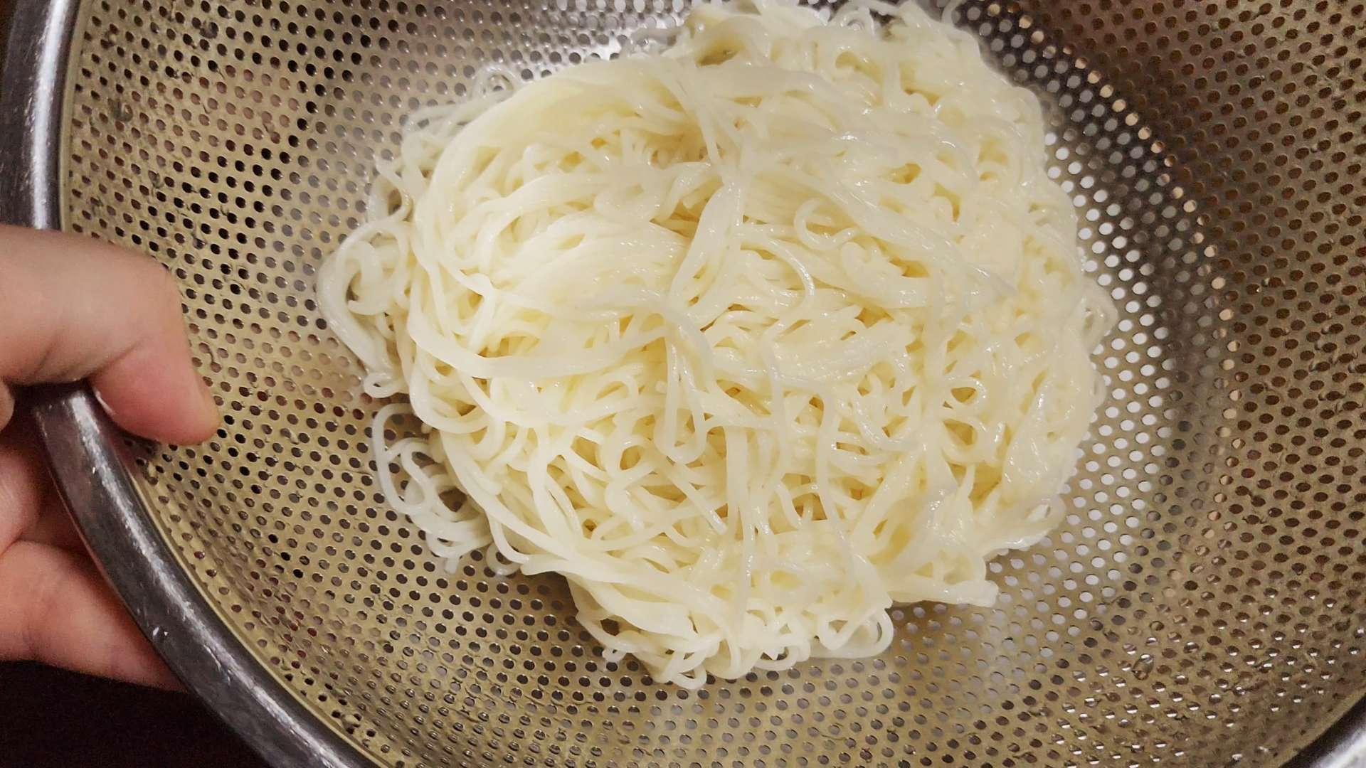 소면은 끓는 물에 넣고 3분간 삶아 찬물에 헹구고 물기를 제거해줍니다.