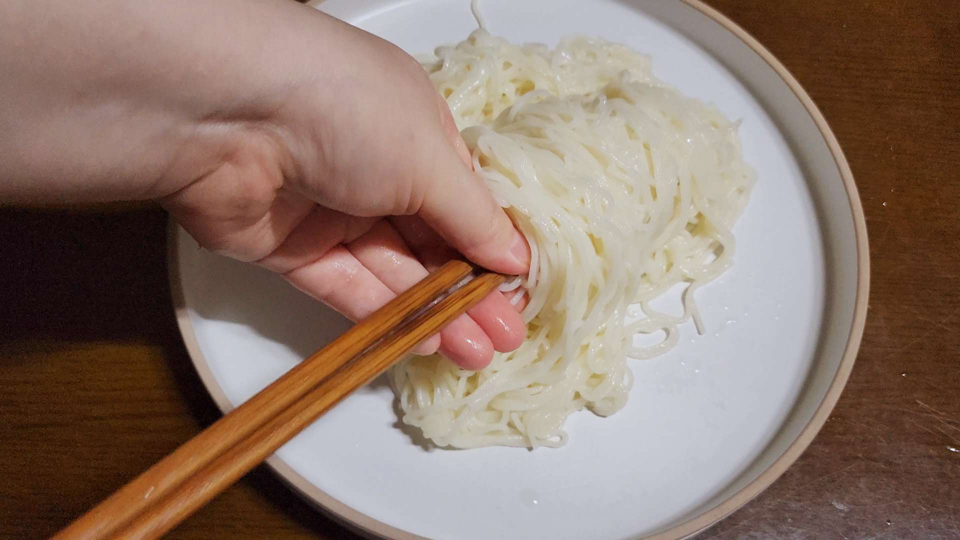 그릇에 소면을 젓가락으로 말아 올려줍니다.