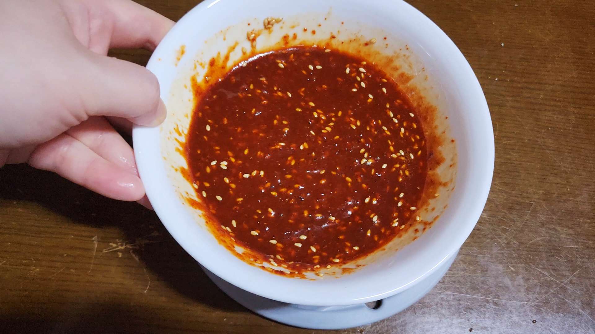 고추장소스: 고춧가루 2T, 설탕 4T, 통깨 2T,