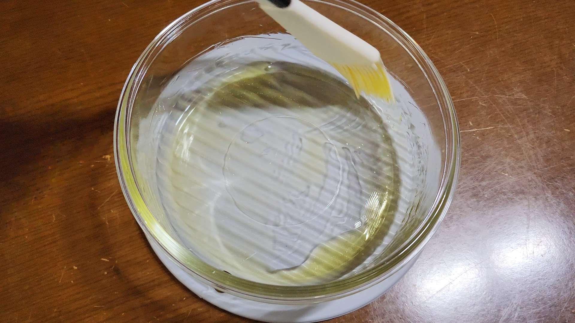내열 용기에 올리브유를 골고루 발라줍니다.