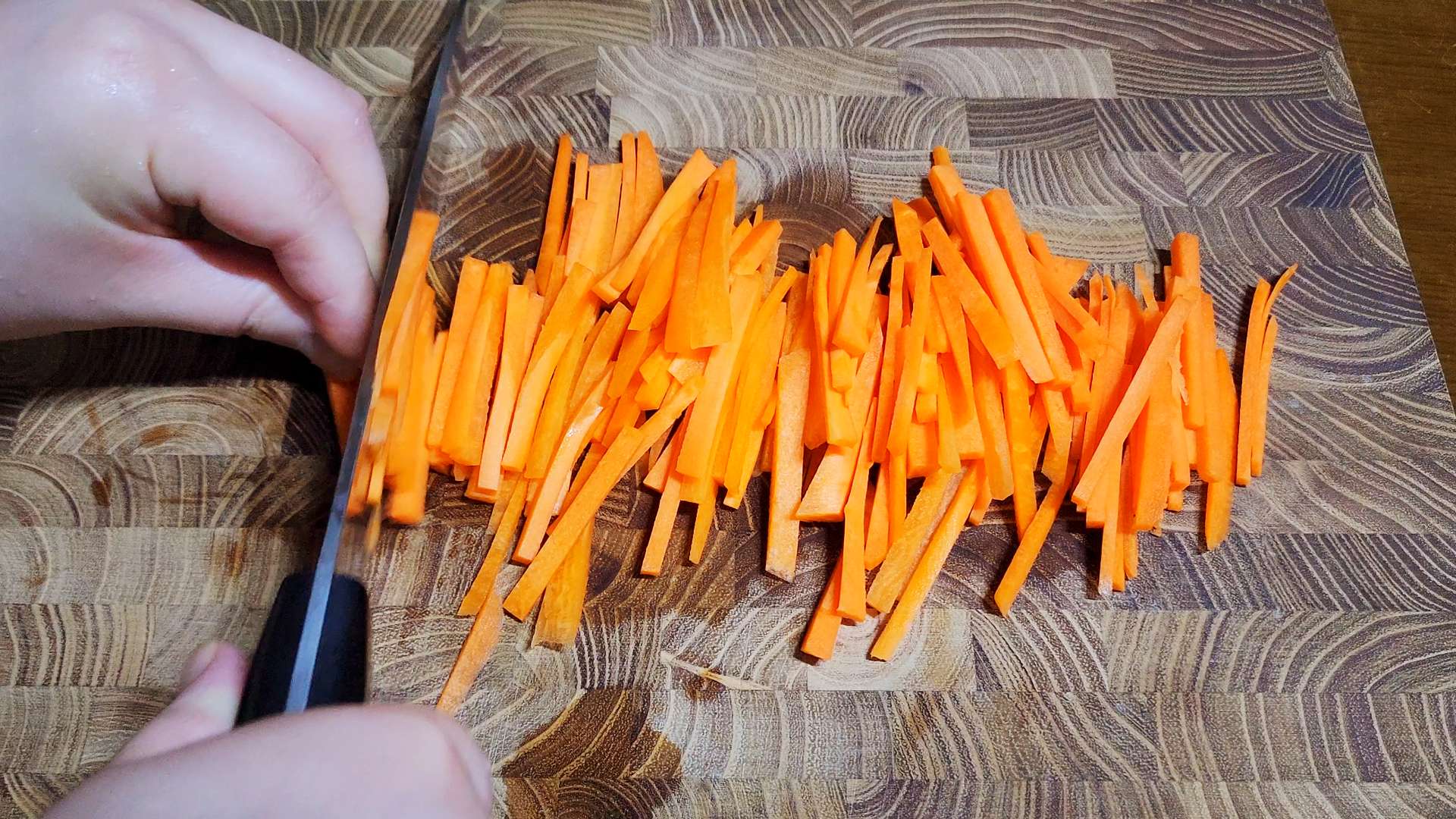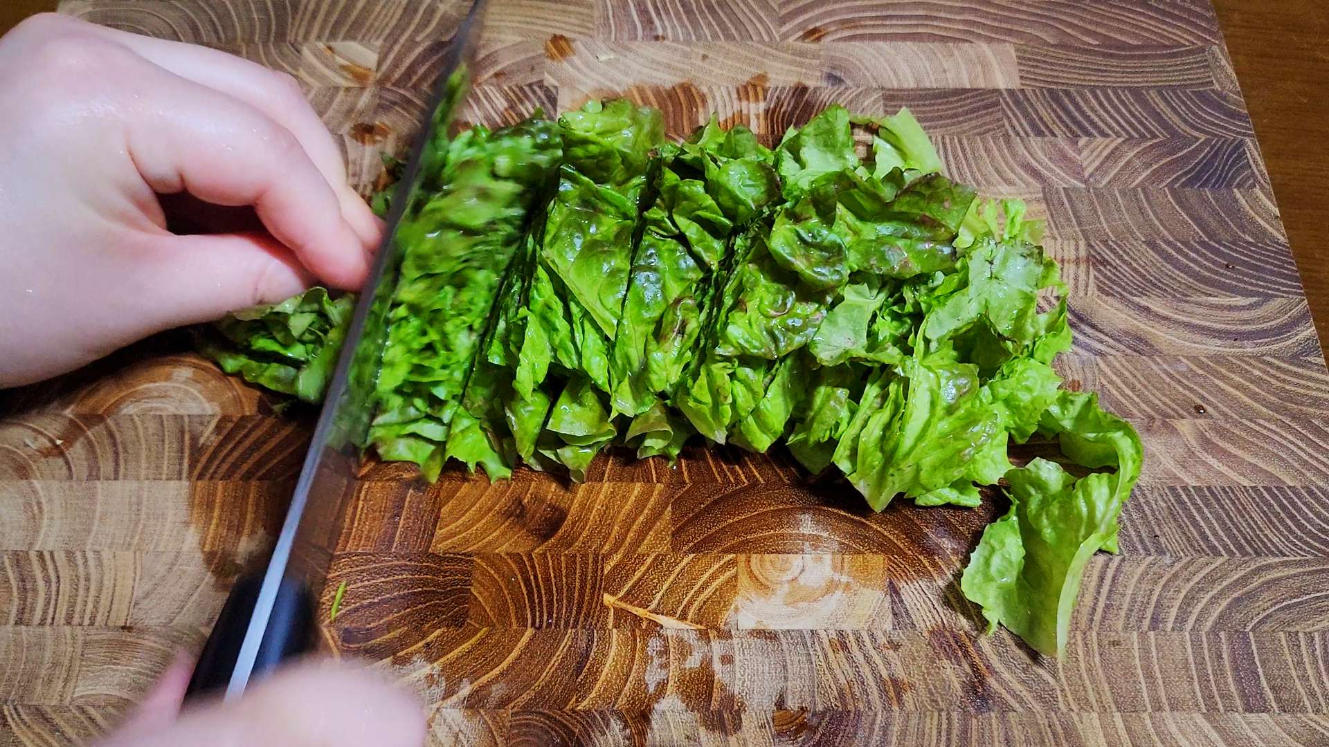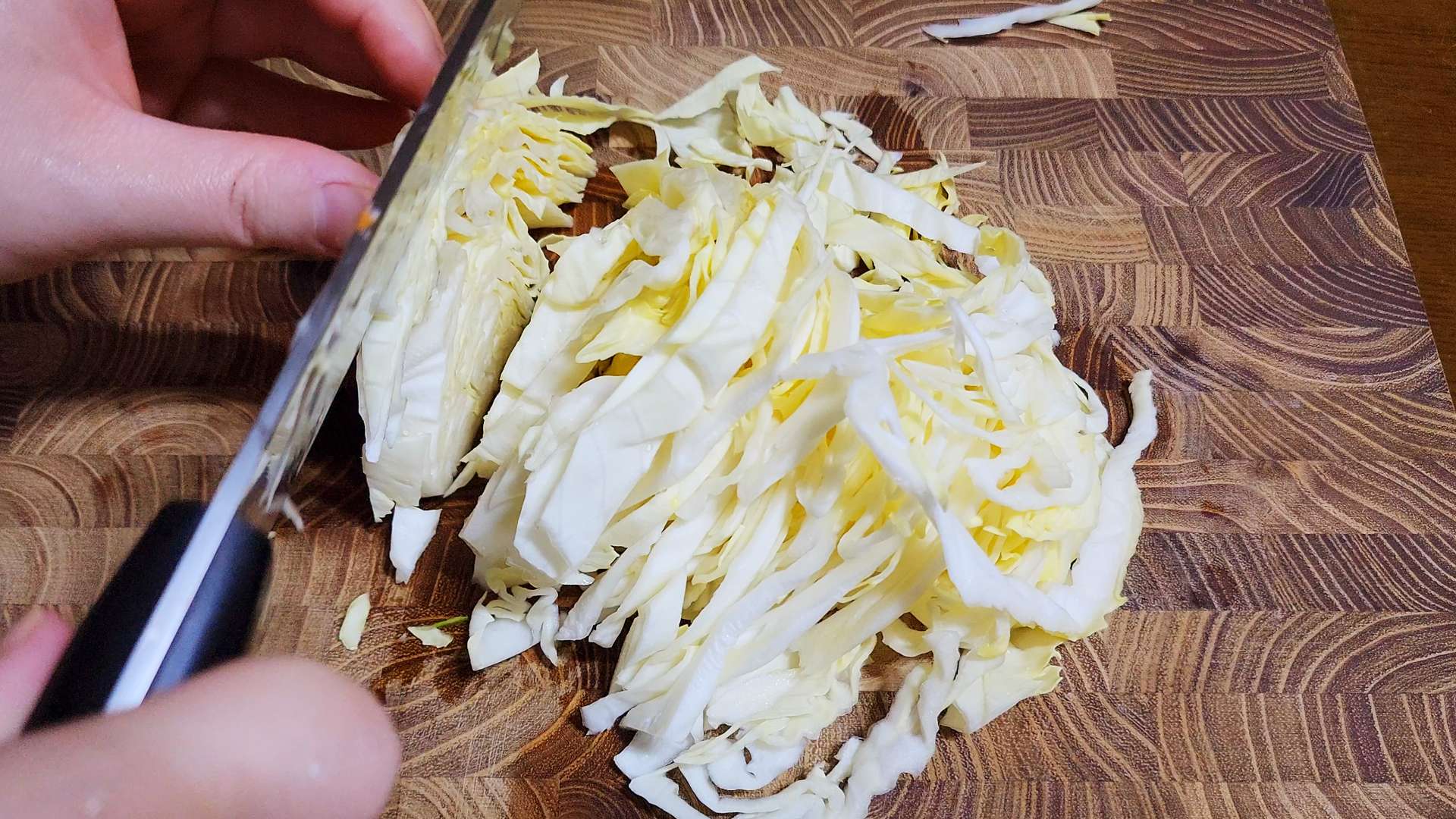 깻잎은 돌돌 말아 채썰어 줍니다.