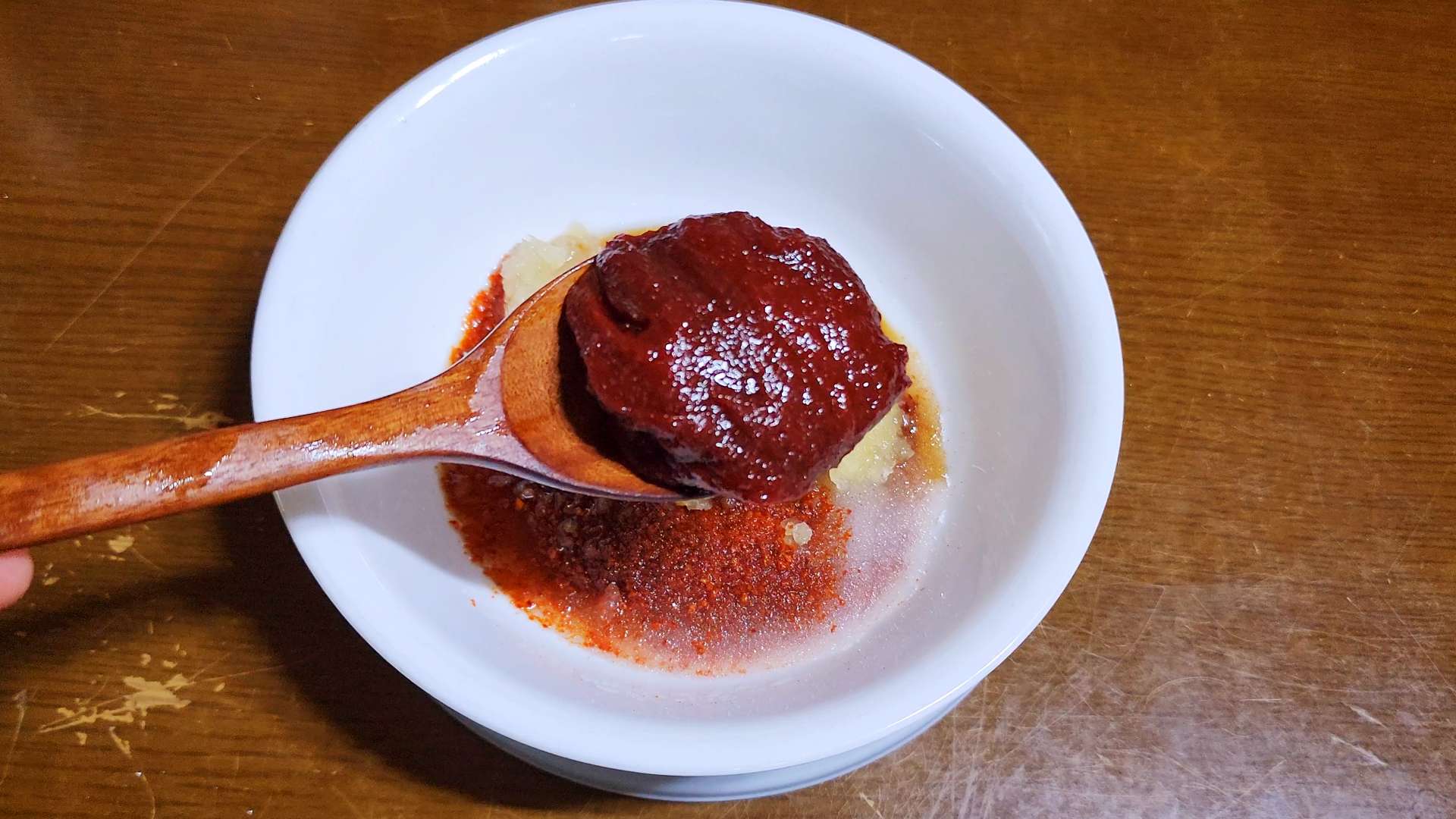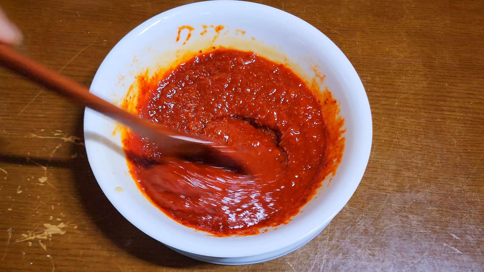 고춧가루 2T, 설탕 3T, 다진마늘 2T, 식초 3T, 진간장 2T, 연겨자 2T, 고추장 2T, 참기름 2T, 매실청 2T 넣고 섞어줍니다.