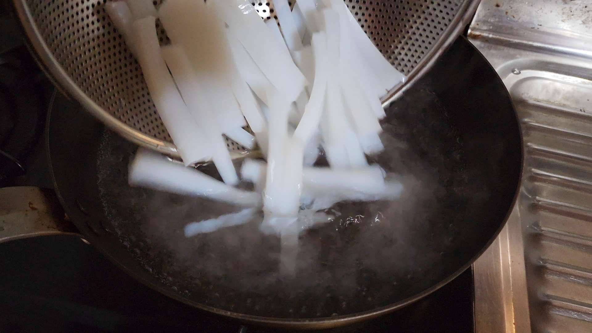 투명해지면 채반에 밭쳐 물기를 제거해줍니다.