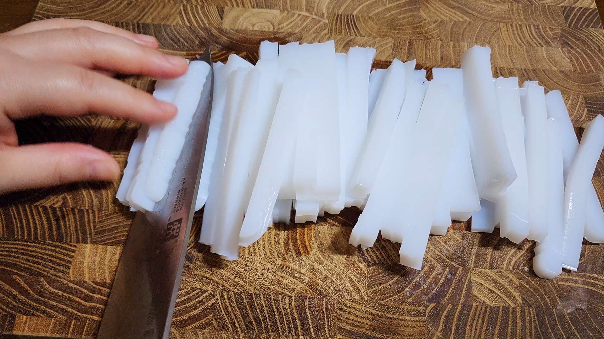 청포묵은 채썰어 줍니다.