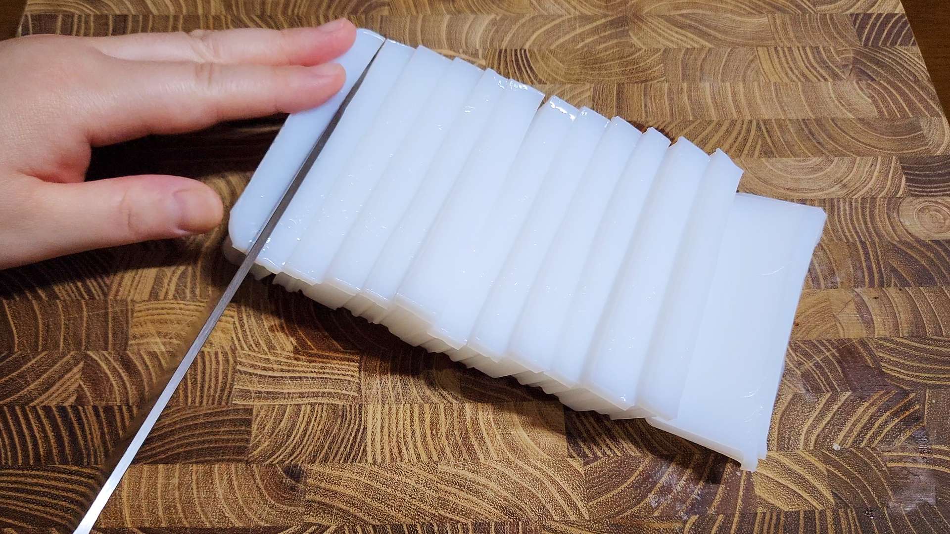 끓는물에 청포묵을 넣고 삶아줍니다.